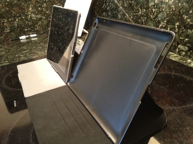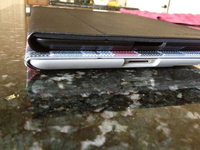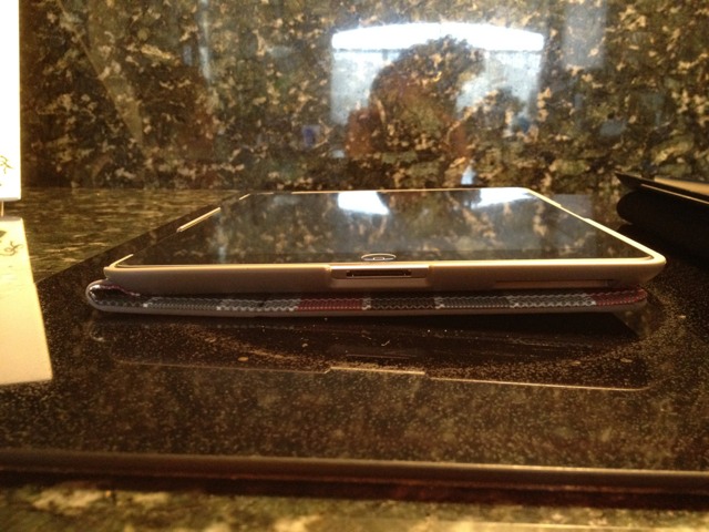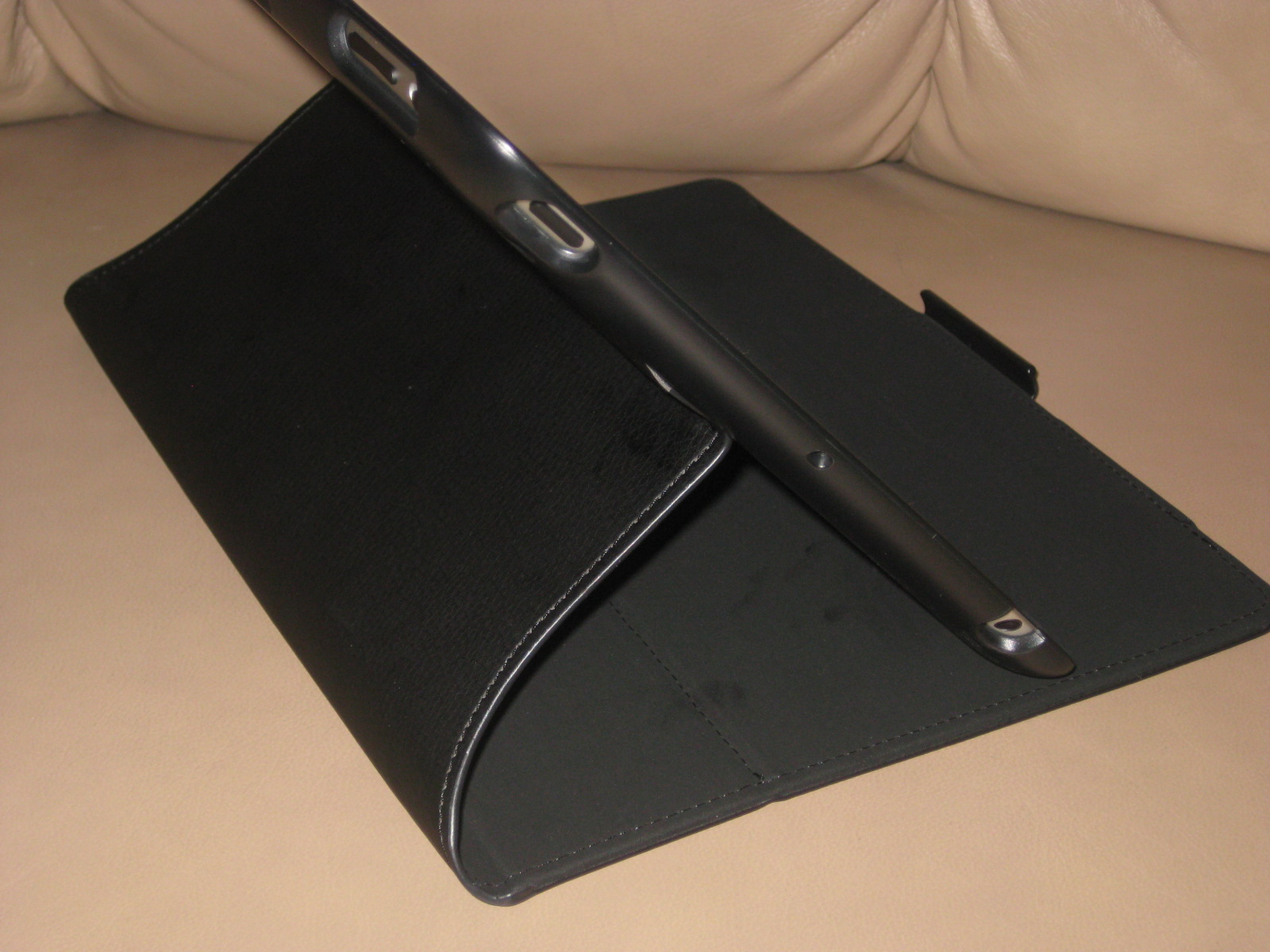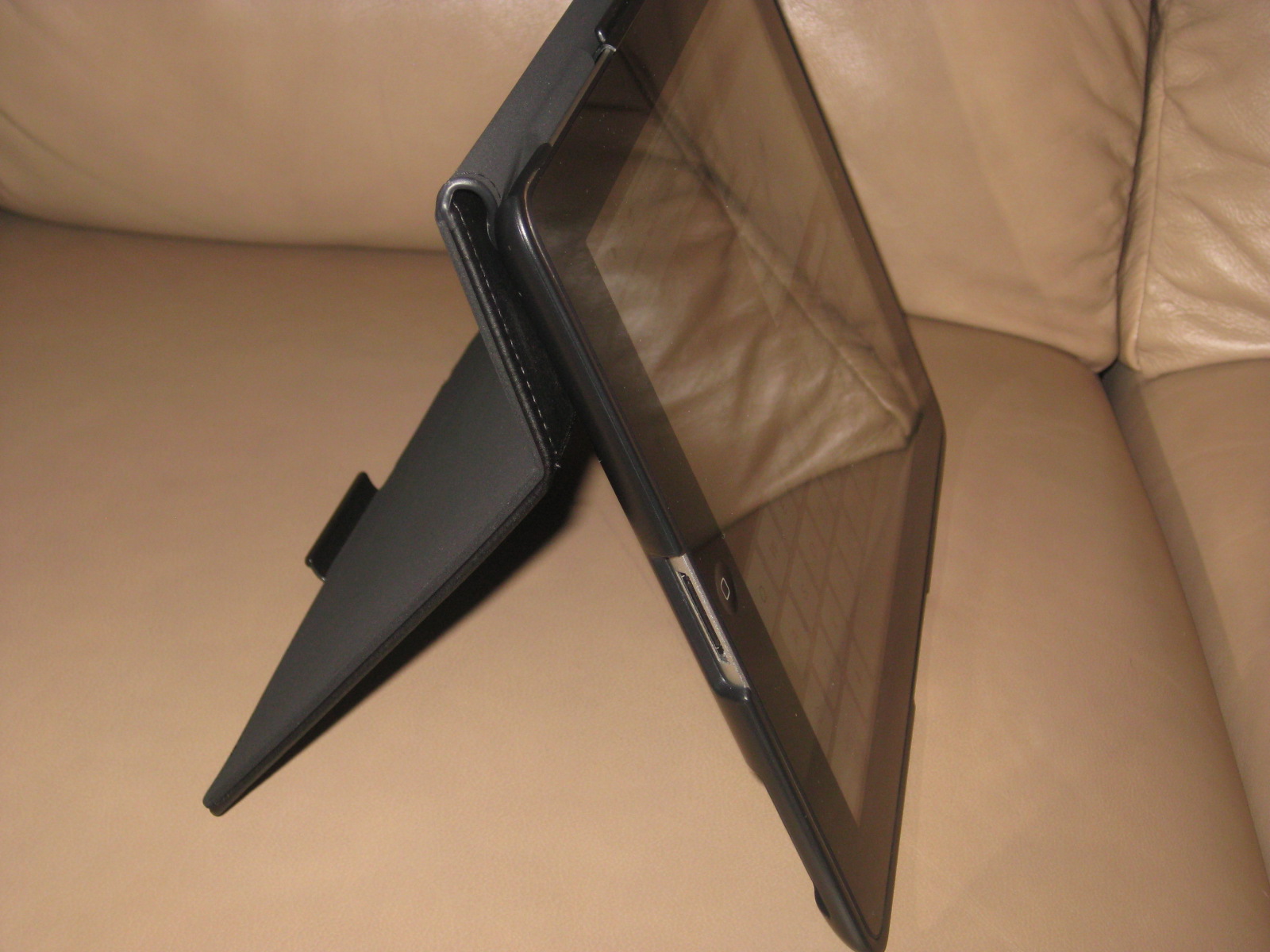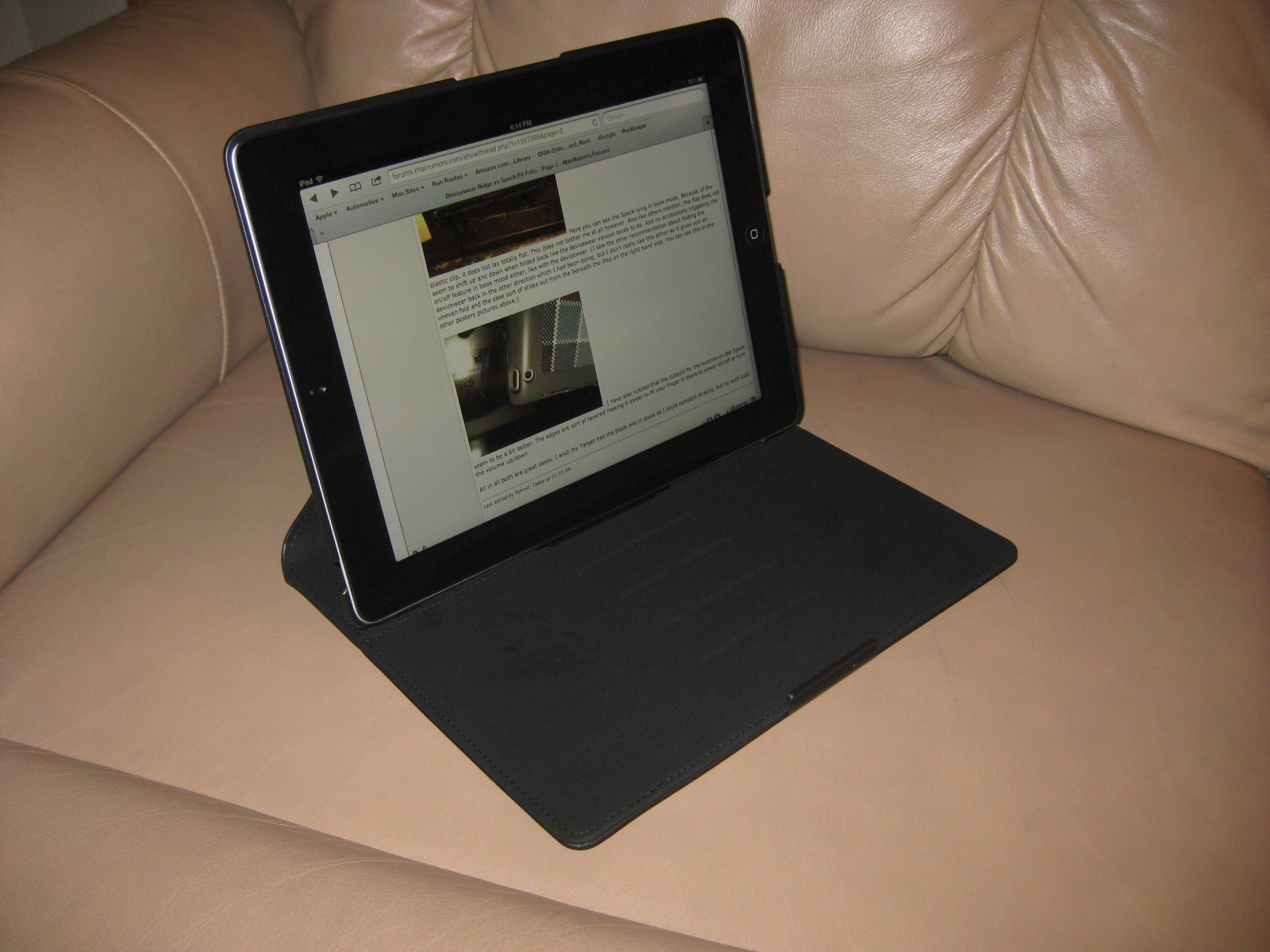 Instead of taking the flap and bending it behind the the case (as you would with a real book/magazine cover, I allow the iPad to bend inside, so that the back of my case is actually touching the velvet like material internally.