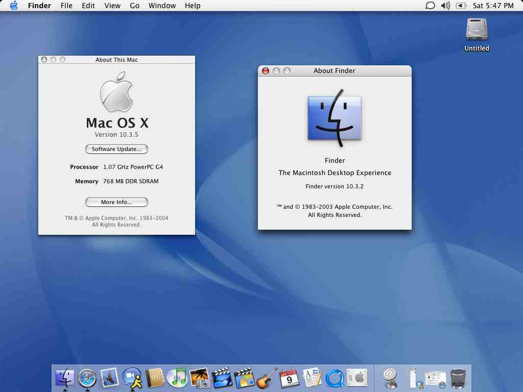 That suggests that Finder v10.3.1 came out with the release of Mac OS X 10.3.4, and Finder v10.3.2 came out along with Mac OS X 10.3.5. Mine says Finder version 10.3.2 and Mac OS X version 10.3.5.SiriusExcelsior said:I'm using X.3.3, and my finder just says "10.3", not even the .2....