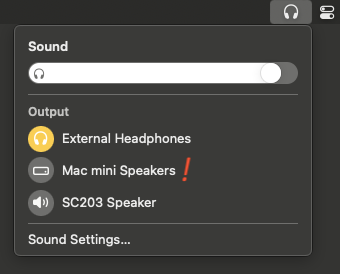 just that. i switch regularly between 'external headphones' and a usb audio device, i never use the mini's internal speaker.