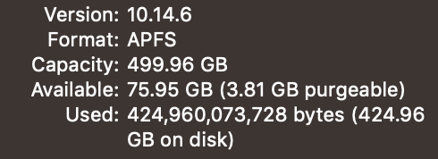 I'm on a 2019 iMac running Mojave with a 500GB SSD, and the amount of disk space free seems to be completely false, as if there is 100GB of ghost data hiding somewhere.