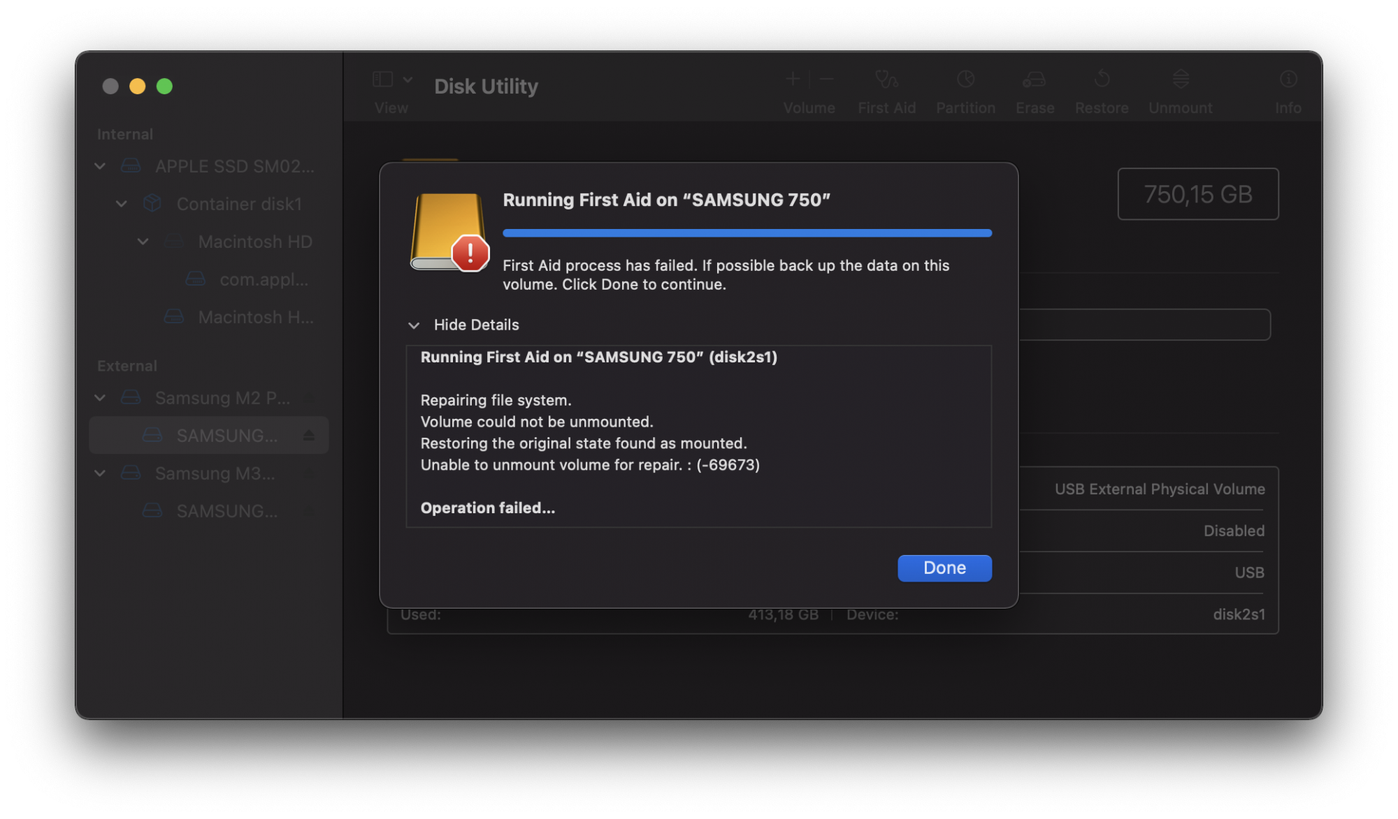 So I have run First Aid on it in Disk Utility. Hereās the result: