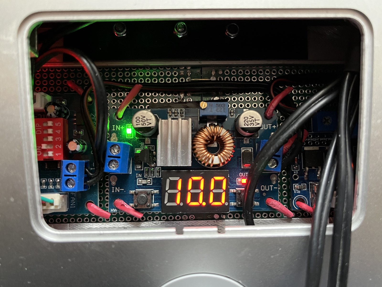 12. The two PWM controllers and the Buck voltage converter are slidable - so all 3 units can be adjusted through the ram hatch.