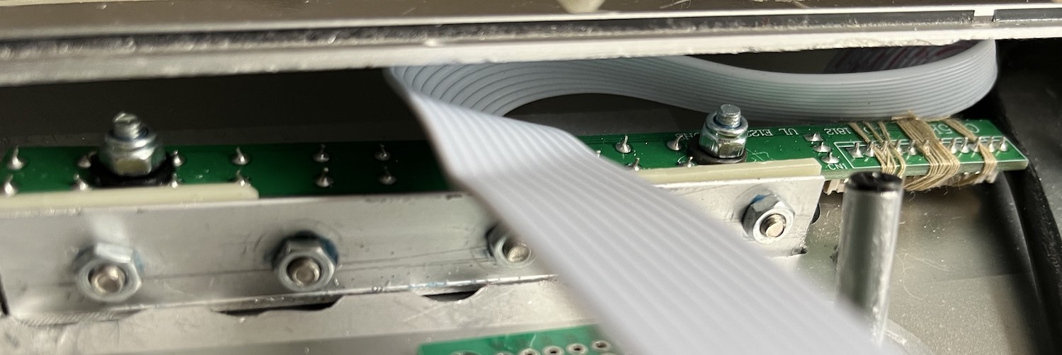 13. The control strip is mounted internally, with the buttons facing to the rear, in the original TB/USB ports. External buttons taken from an old TV are fitted into a new cover-plate cut from the damaged iMac case that I took the speaker backing plates from.