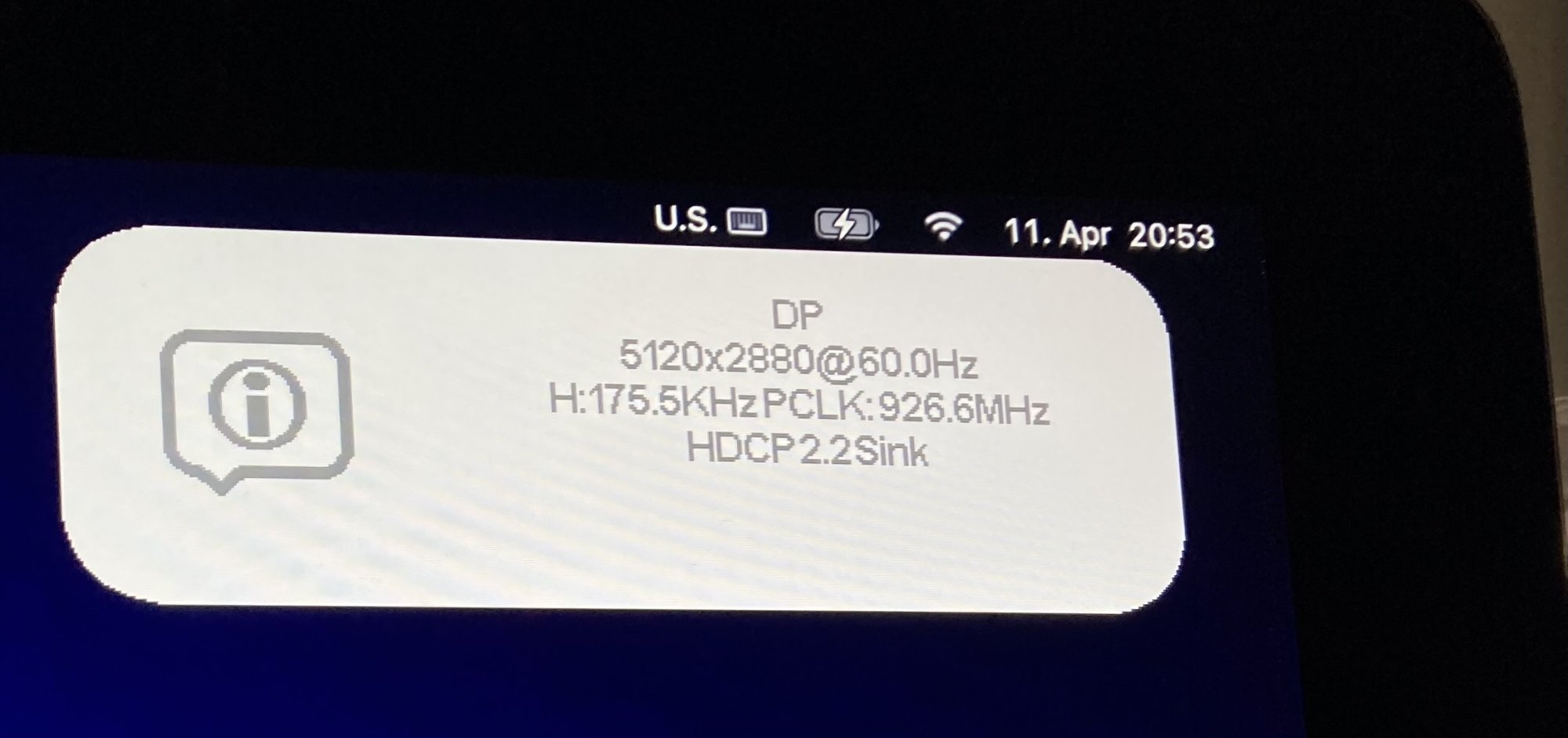 - 5k60 works via single cable, USB-C to USB-C or USB-C to Displayport from M1 Macbook Air, (HDMI not tested yet)