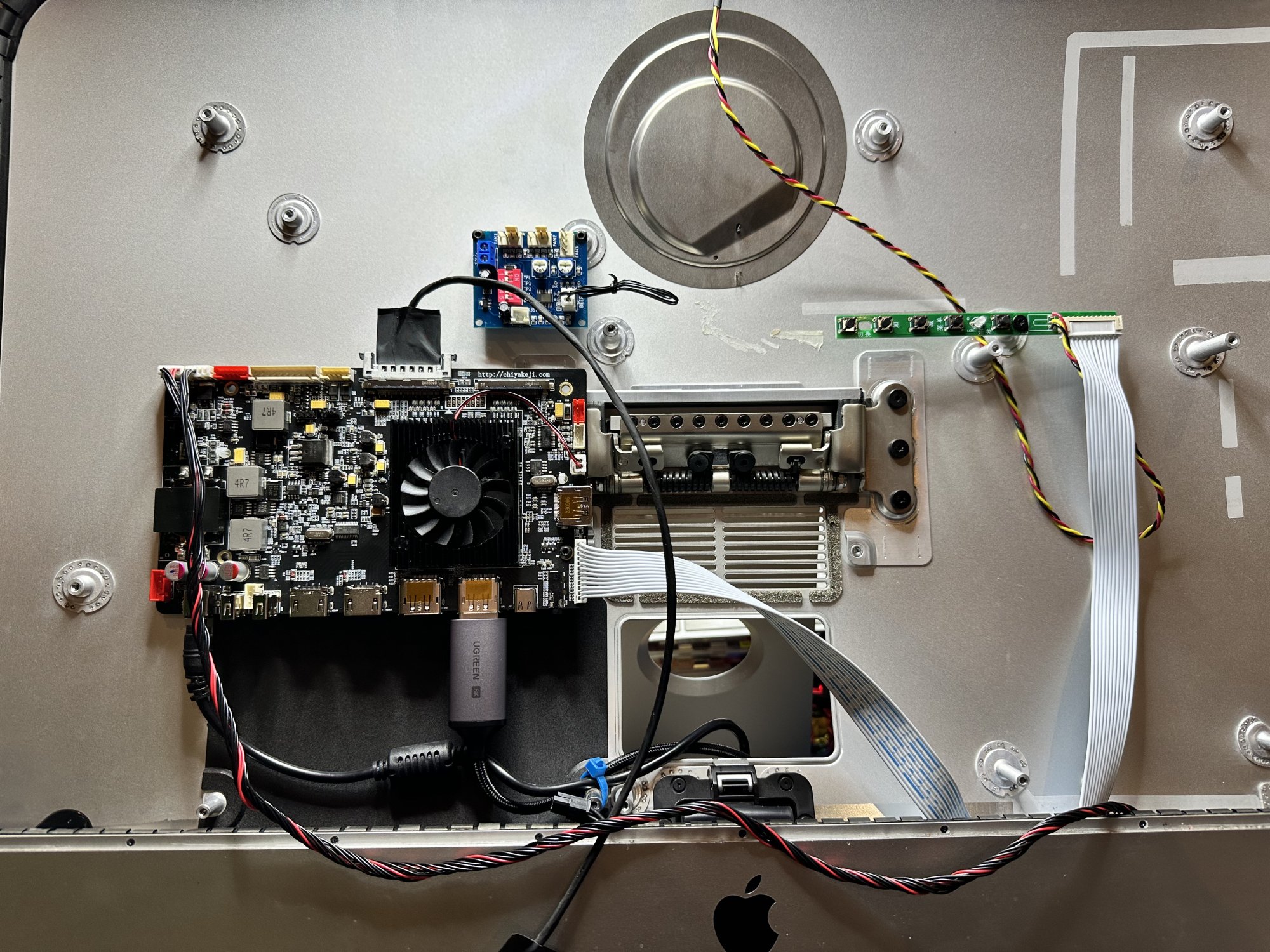 I did that for my two 21.5" 4k conversions... no RAM door, so I had to run the cables in somewhere.Quick question for anyone that's done this.....I've decided to remove the built-in power socket so I can snake a couple cables through the hole. I removed the RAM door mechanism, but the plug/socket seems to be in there pretty tight and I don't see any screws or clips holding it in. Any tips on getting it out of the case?