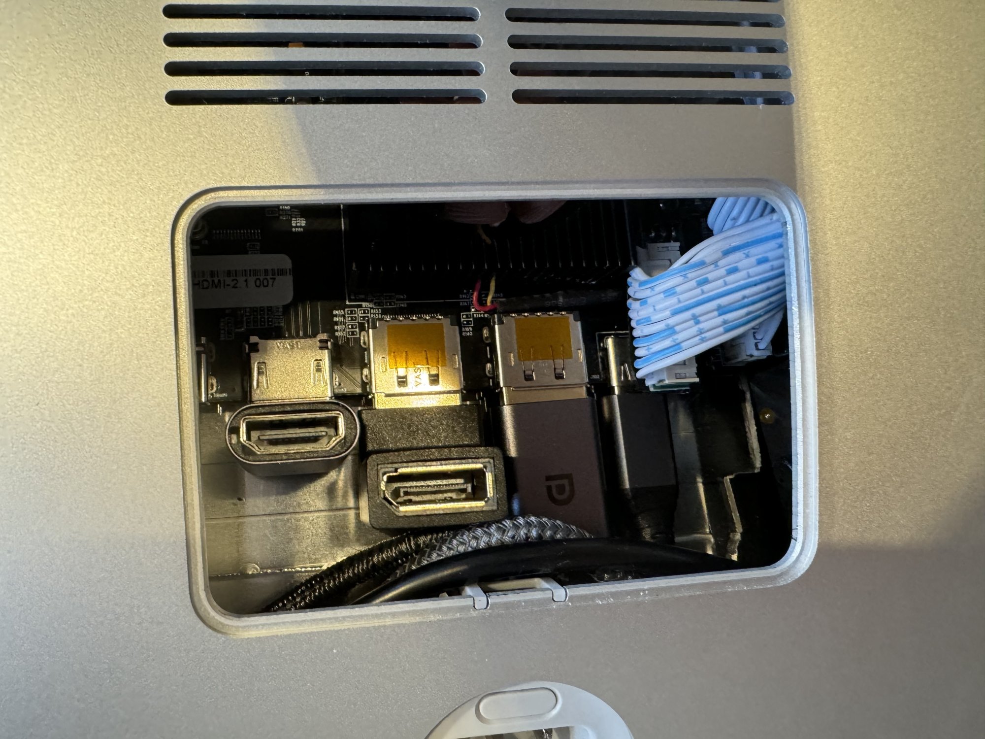 With adding the OWC Thunderbolt 4 hub to my setup I can connect to the R1811 using a USB-C to DP 1.4 cable, streamlining the connection to just one cable to my MacBook. Additionally, I plan to connect the original speakers to the hub in the future, allowing me to control the audio from the keyboard as was possible with the original iMac setup.
