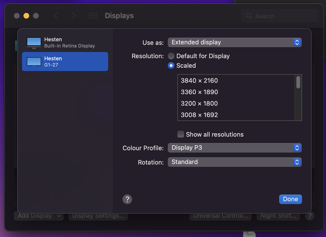 With adding the OWC Thunderbolt 4 hub to my setup I can connect to the R1811 using a USB-C to DP 1.4 cable, streamlining the connection to just one cable to my MacBook. Additionally, I plan to connect the original speakers to the hub in the future, allowing me to control the audio from the keyboard as was possible with the original iMac setup.