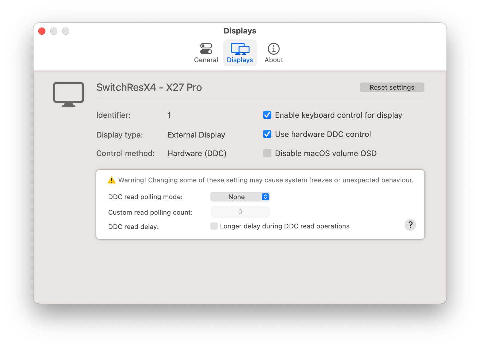 I made one small change in ExternalDisplay.swift to reduce the maximum volume reported to the app to 35 (rather than the 100 returned by the R1811 driver board) since it is way too loud, and therefore the OSD slider of 16 steps wouldn't provide the appropriate level of granularity.