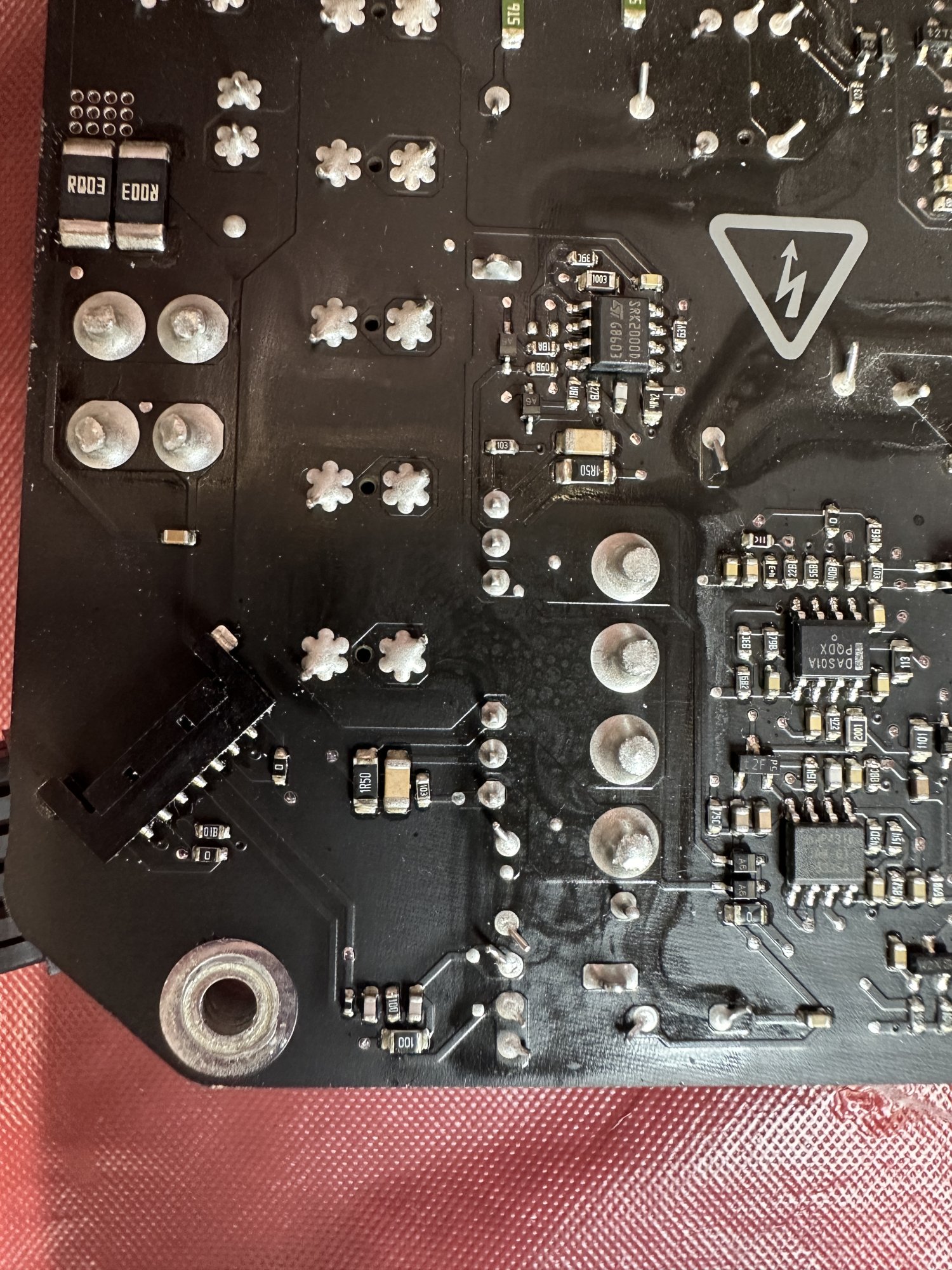So, some close-ups of PCB tracks around that area plus the nearby chips/FETs might help.