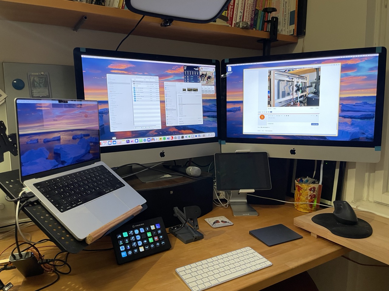 Easy, the one on the right is attached to a VESA mount & arm (the one seen in the picture with the wooden construction)Hey, looks really cool, I'm also planning to setup dual monitors. Can you please explain how you able to achieve this? How did you attach your two monitors ? thanks