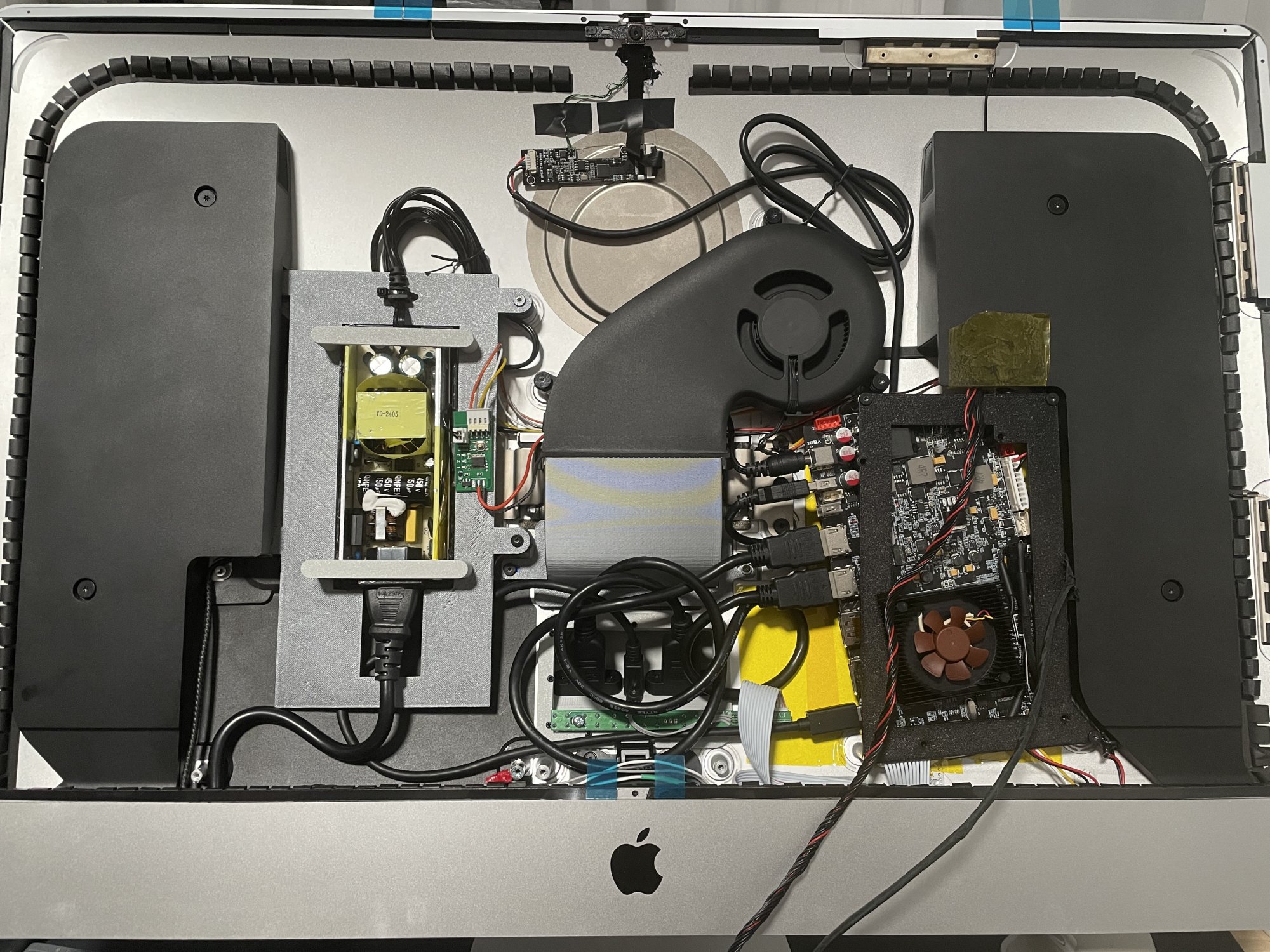 I love the thorough effort to retain all functionality except the CPU. I don't know anything about 3D printing, but my library offers a printer for patron use. Could you share the shape file for your rear door replacement? It looks very tidy, as opposed to my wires all dangling out the back of the open cavity. Thx. -DeanI thought I'd share my setup. Some key features of my 2015 iMac 5K conversion: