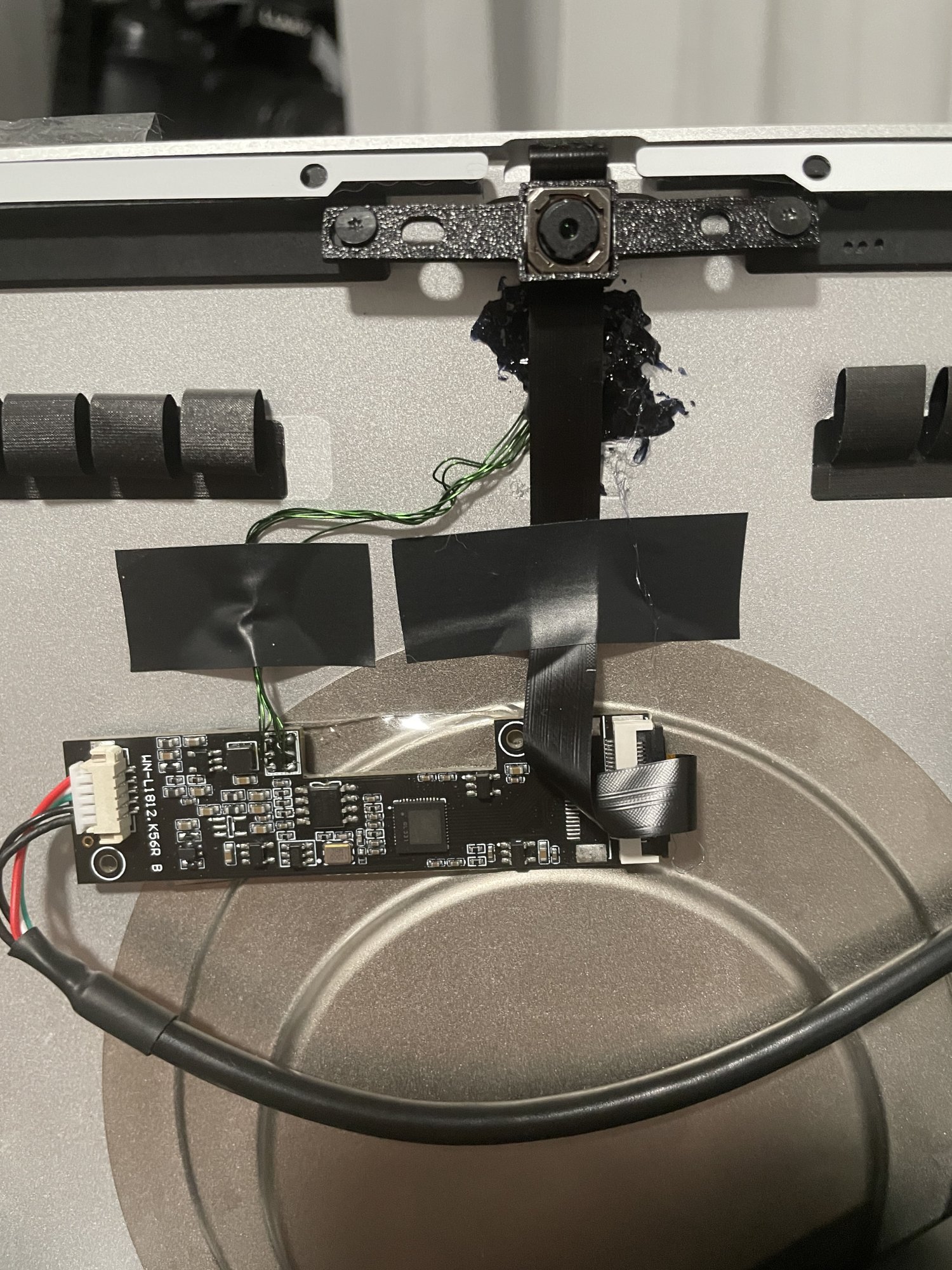 - Generic USB webcam installed. I also rewired internal microphone to the location used by stock microphones. The microphone picks up fan noise but most voice apps have noise suppression feature which eliminates the problem completely.