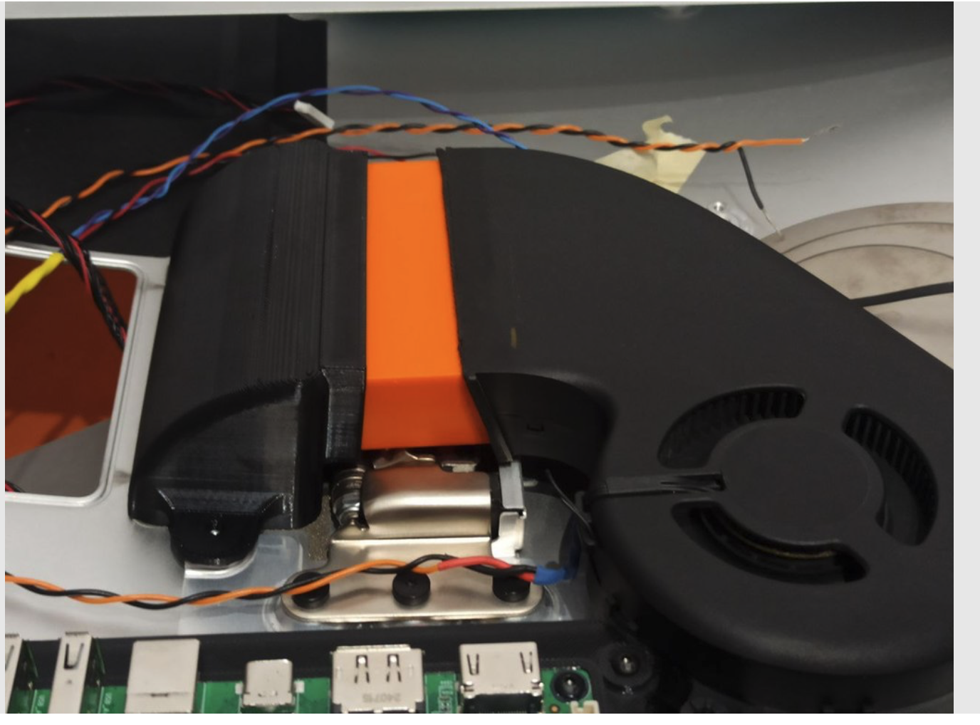 The original fan with Paul's regulator at rest is at 20%, it is barely noticeable once you have closed the monitor. If you are going to use it, I have uploaded the two STLs to thingiverse to print.