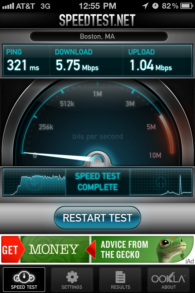 Verizons average download speed is around 800Kbps.