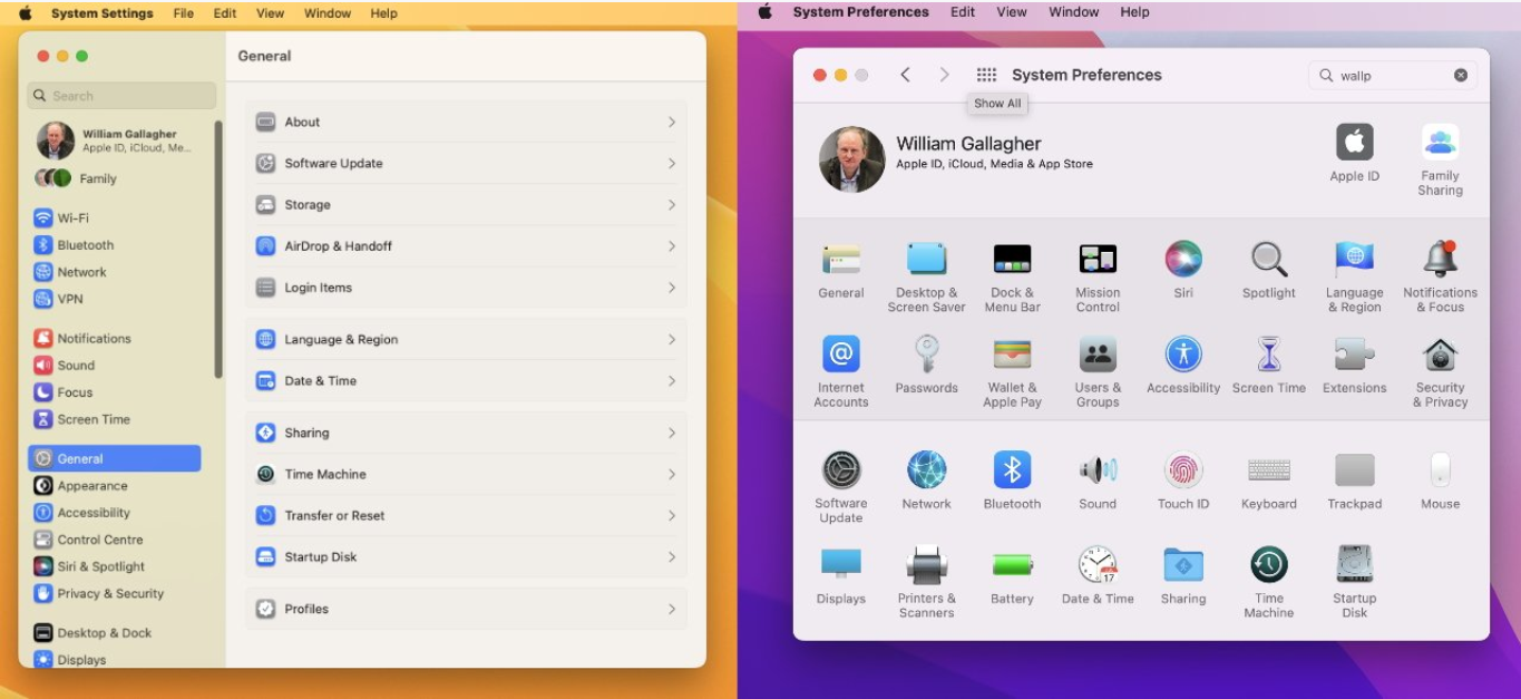 An example of poor design is the Apple changing the system settings. Prior to Ventura, the icons were all laid our horizontally and you could quickly and easily identify what you needed. Venture and beyond mimics iOS, but is harder to navigate and find things.