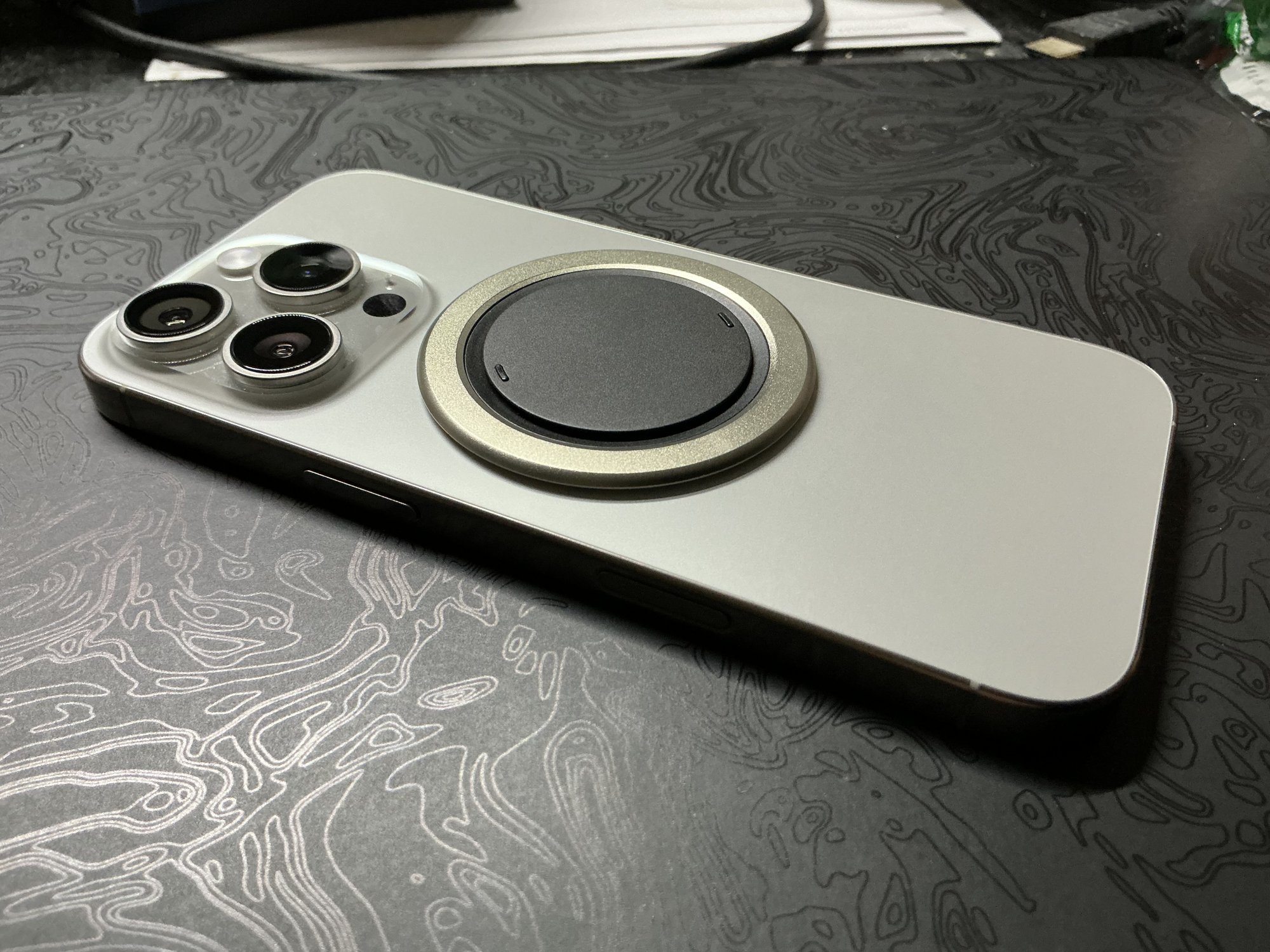I can only comment here on what I do because I don't own the iPhone 15 Pro. I do own the 11 Pro Max, my primary phone. Generally, the only tables I'm sitting at are at a restaurant. In a booth. If someone is bumping the table hard enough for a phone sitting at the center of the table to slide then everyone at the table has much BIGGER problems.