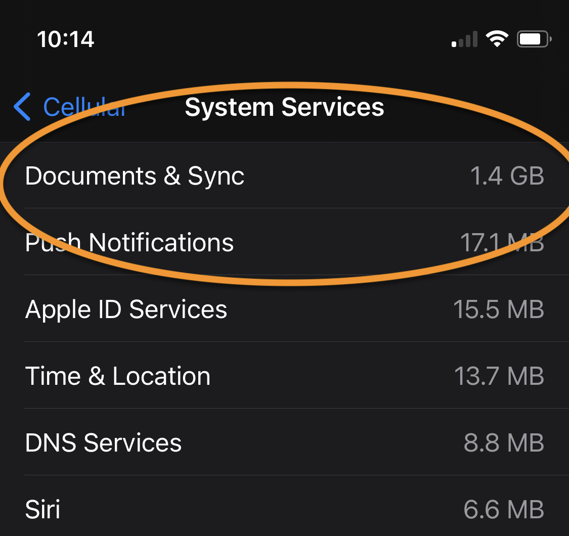 This is why the problem seems to confusing to troubleshoot, as I think we are seeing Documents & Sync traffic related to apps that we've turned off elsewhere in settings, but that somehow are allowed to do certain activities over Cellular that don't show usage tied to the app, but instead lump it into this nebulous bucket called Documents & Sync which is very difficult to analyze.