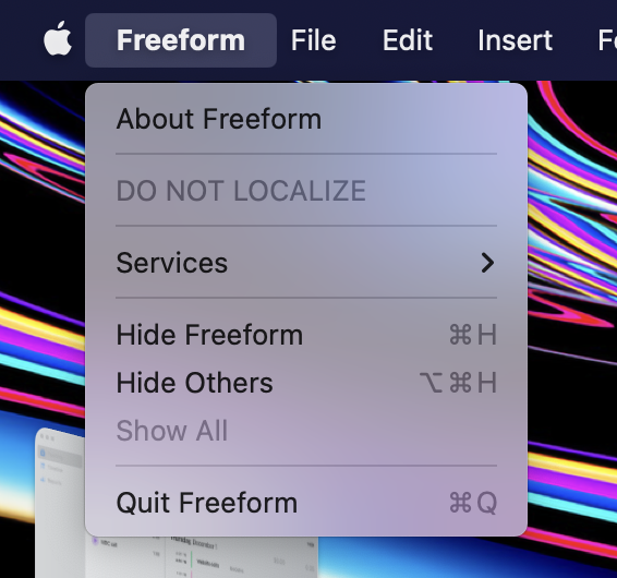 haralds said: This looks like an older version during beta or a bug. It's a developer reminder concerning the menu. It is not visible on my RC1/Release version. Click to expand... It's a bug. I am on the official macOS 13.1 update—never installed a beta/RC version in my life—and it's showing up on the app when you close out the main window but haven't quit the app.