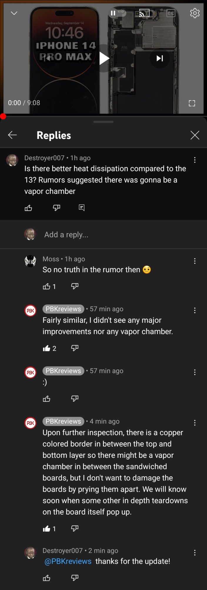 See attached image of comments in the video. May be some sort of copper suggesting a vapor chamber but we have to wait for a more in depth tear down.