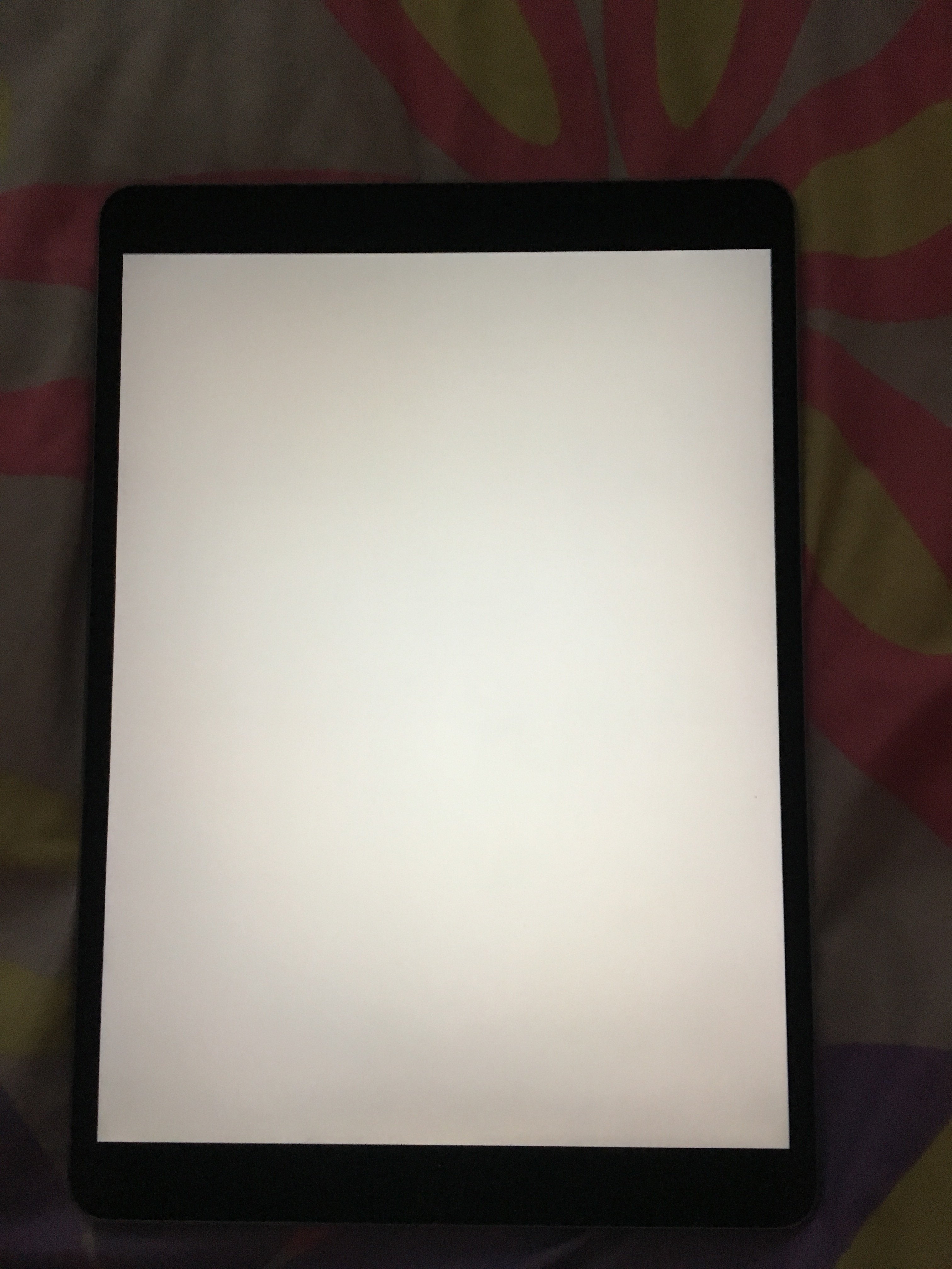 Would appreciate the thoughts of the forum on whether there is a yellow band. Sometimes I think I see it, sometimes I think it's just the backlighting. I'm partly convinced the homebutton side shows it a faint amount, but sometimes I can't tell. Here is my 10.5 with TT off, max brightness.