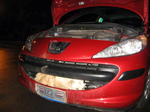 apparently this puppy survived a 60mph straight-on-accident, and subsequent ride to the vet with only a fractured leg (now healing)!!!
