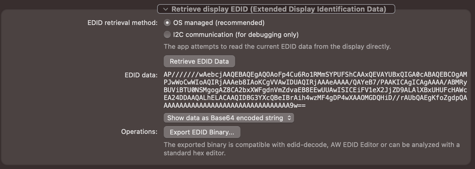 5. BetterDisplay to extract/apply custom EDID. (Use BetterDisplay: v1.4.6 or later!)