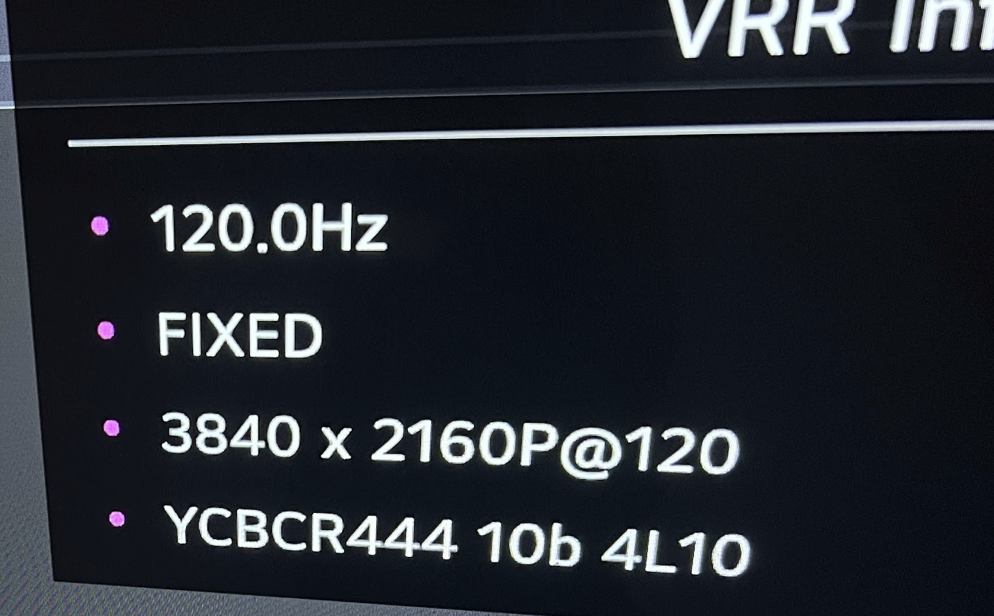 YCBCR444 seems good too, but I'm not sure how to switch between YCBCR444 AND RGB444 to test differences for myself. I thought it would be in MacOS's settings > displays > LG OLED > Color profile, but that didn't change anything in the popup in my first picture.