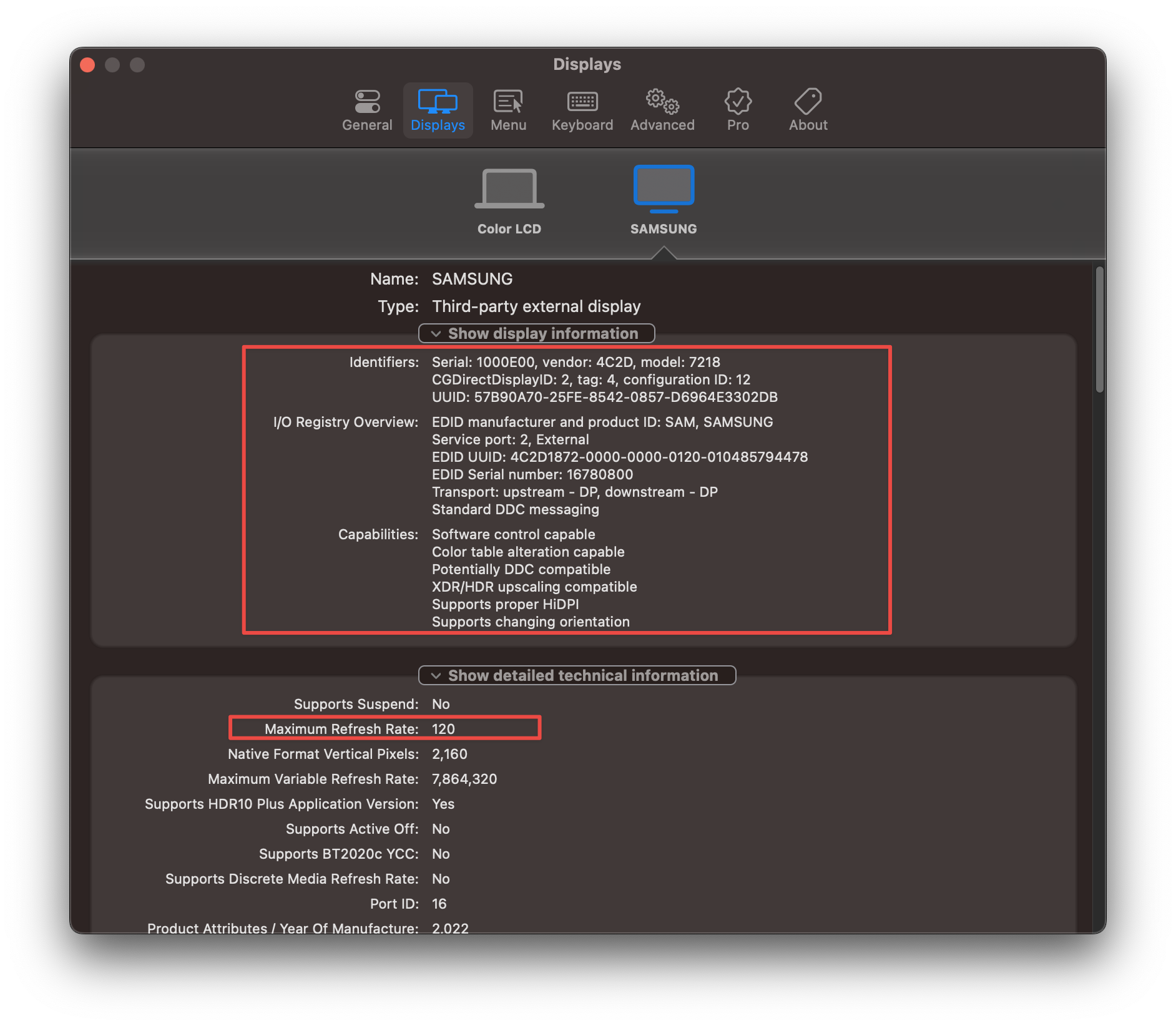 My problem was my hdmi cable and once I switch it I got what I wantedHello everyone, BetterDisplay is suggesting that I'm only getting 4k 8b 60hz HDR on my Samsung TV, which is far from the 4k 10b 120hz I was hoping for. Based on this thread, most discussions about TV settings are focused on LG models. I'm wondering if there might be a compatibility issue with Samsung. Can anyone offer any insight or advice? Thank you in advance for your help.