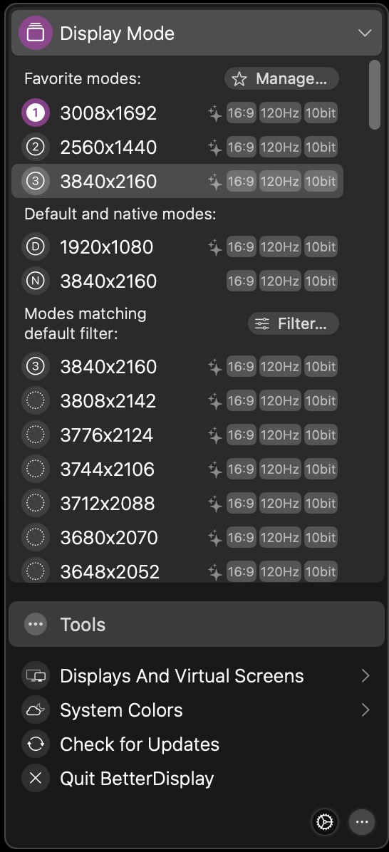Is this a hardware limitation or does it have to do with any settings within Better Display?