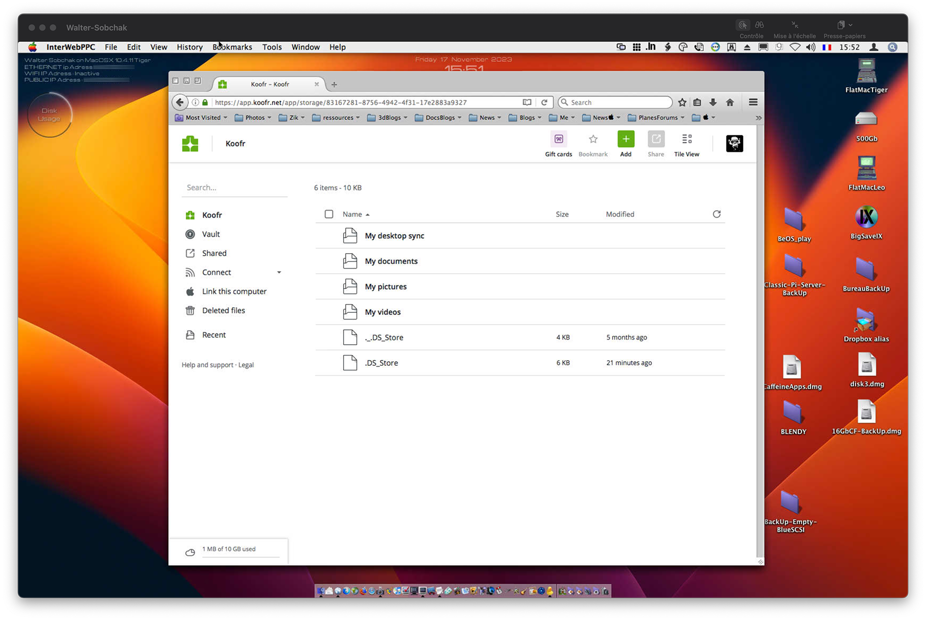 Register yourself in CloudMe (cloudme.com), a European based cloud company, it can do WebDav from the OS (Leopard or Sorbet) or use WebDav client, to connect to directory. And, install desktop version, or mobile version (iOS or Droid), just to make sure that what you type in Powerpc realm is being synced.