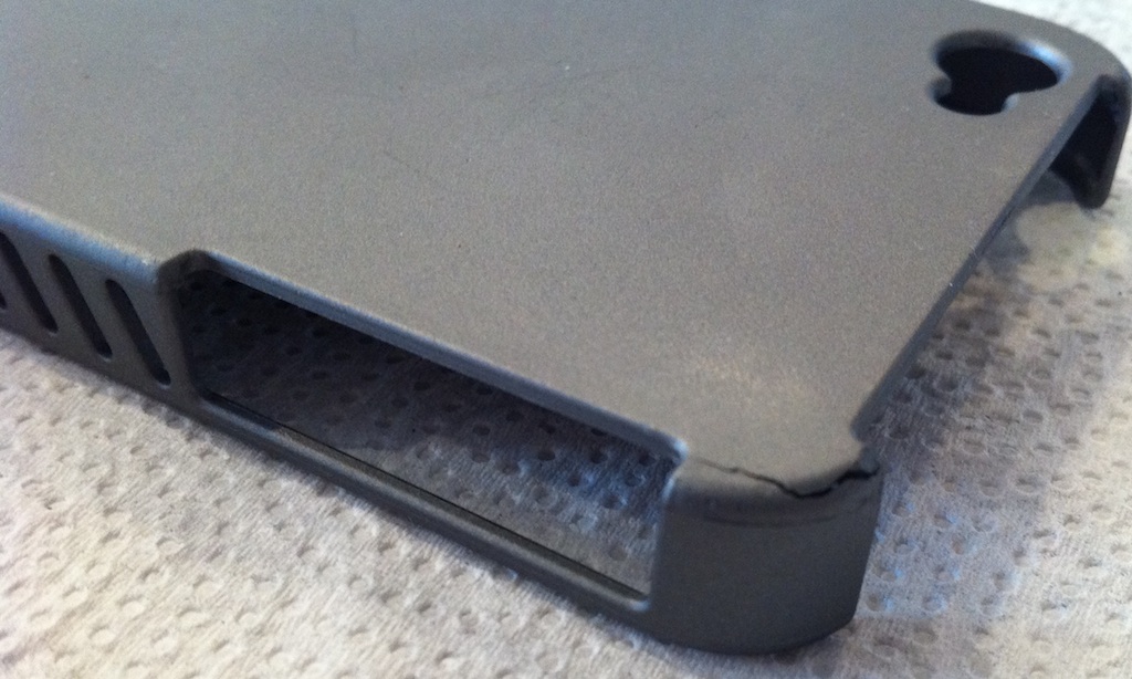 That's one of the advantages of Soft silicone cases. They can take a hit and they keep both the phone and the case undamaged. Of course they also have a few disadvantages like not looking as nice, attracting a lot of dust and lint, getting deformed if you take the phone in and out constantly (which sometimes is a requirement in order to clean it). I have a cheap iLuv case with a screen protector (which was the only thing I found) and yesterday had my first drop. Both the case and the iPhone 4 were unharmed, but the fall seemed messy.
