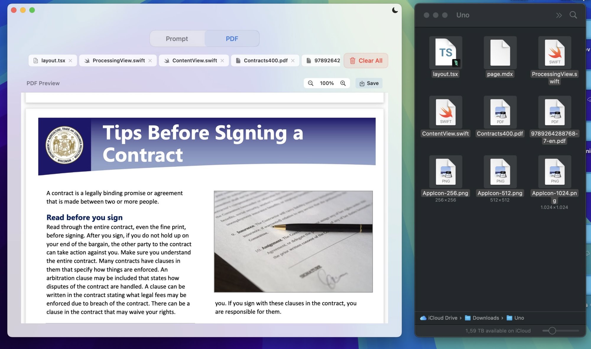 I'm in the dumb but fun process of building 26 free macOS apps, one for each letter of the alphabet. Today I finished (U) Uno, you drop files (almost any file type) or folders and they merge into either a PDF or a prompt for AI. I'm currently improving the performance when dropping more than 10-20 files.