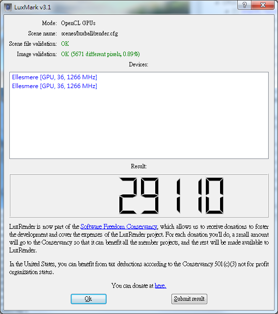 Luxmark is reading 18 CUs. Scores are within 4 digits, not 5 as they should be. I wonder why people are getting different reported CUs with the RX 480...