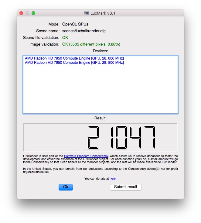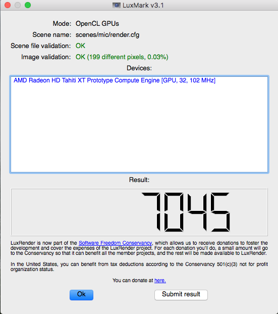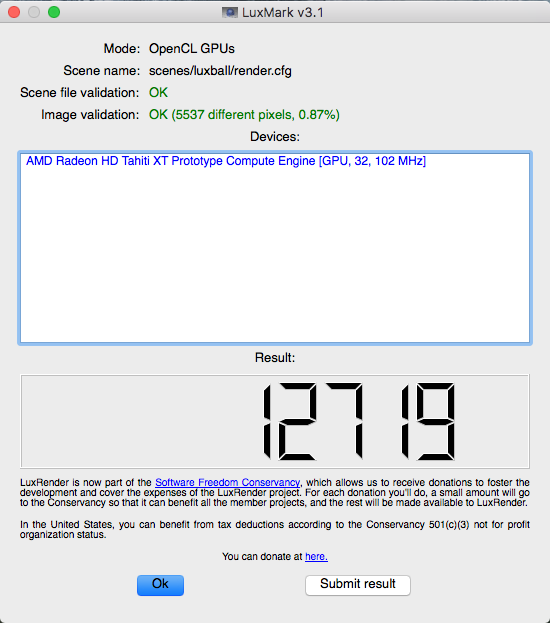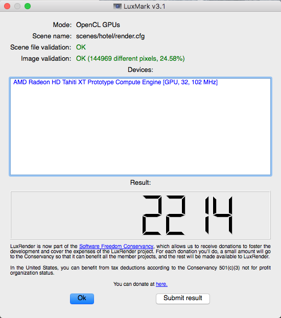 Redid Luxmark to have solid benchmark on the same MacOS and Luxmark version to compare against incoming RX 480.