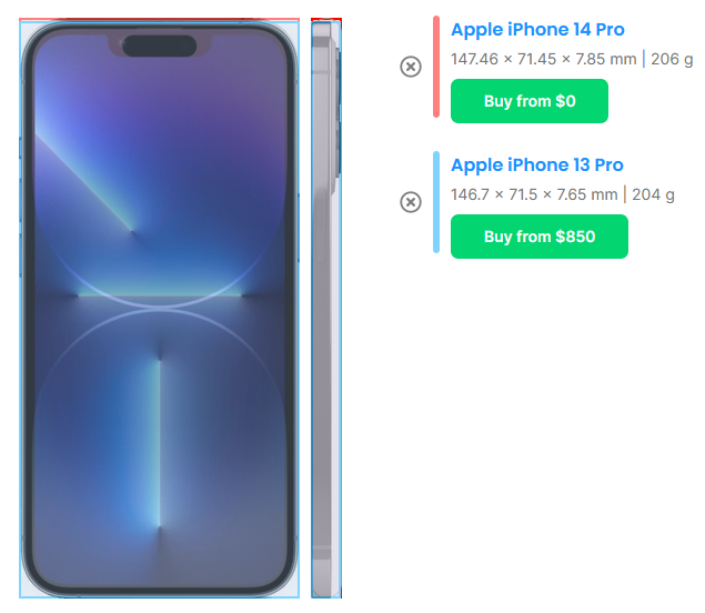 Apple iPhone 14 Pro vs Apple iPhone 13 Pro - Visual phone size compare
