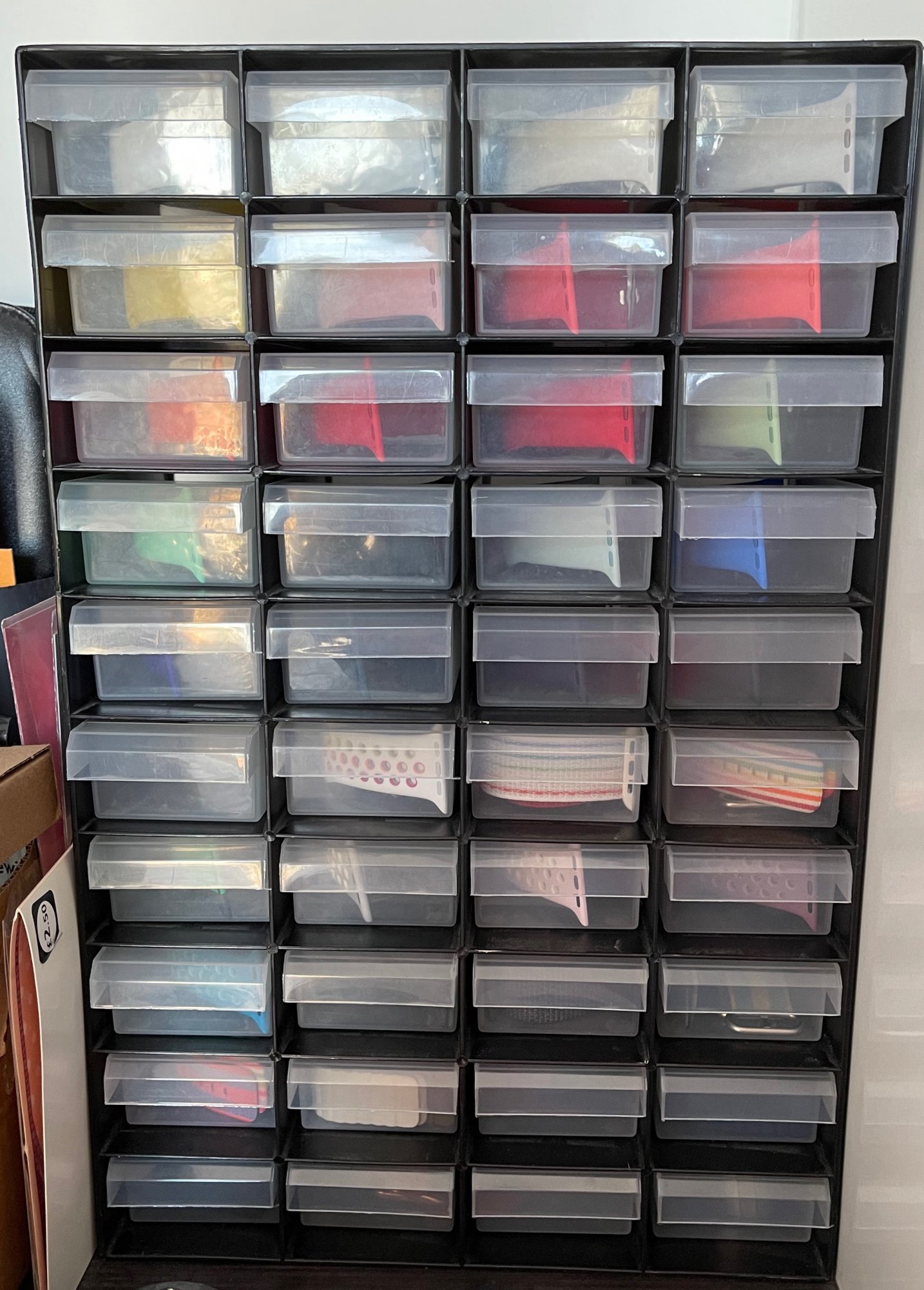 Over the past two years, I have gone from four bands to over 35. I am currently keeping them in the original packaging in a container, but I mostly match my bands with outfits. It has become cumbersome to keeping digging in the container to look for a band. I wanted to know what cases or other storage options are you using to store your bands?