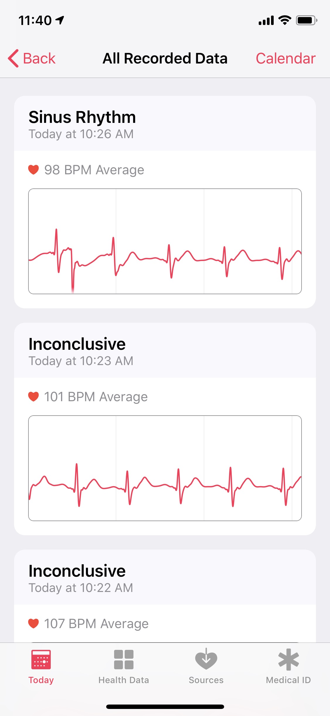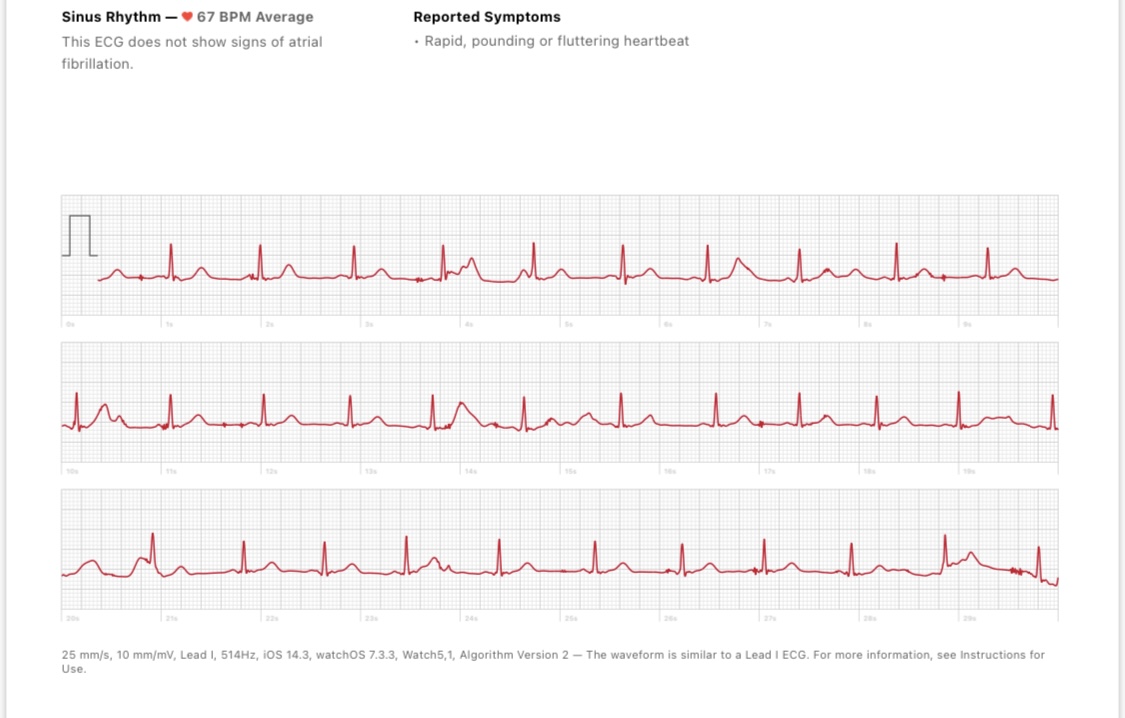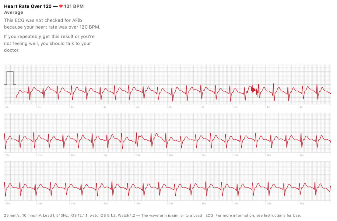 As soon as I got off the treadmill I did an ECG and said HR was high. Then did 3 more and got inconclusive and thought is was discarding or not saving this data so I keep trying. On the 4th ECG my HR had dropped below 100BPM and got a Sinus reading. On my HR Recovery you can see when I was running the ECG. Also see another ‘blip’ misread on my highest HR at 8 seconds.
