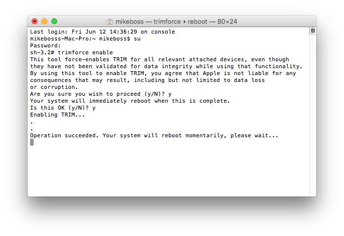 (Once Trim Enabler has messed around with that kernel extension, you can obviously enable "rootless" again - but what comes a bit of a surprise to me that it is then obviously not necessary to still disable "kernel extension signature check", once you have enabled TRIM. Also see my previous post).