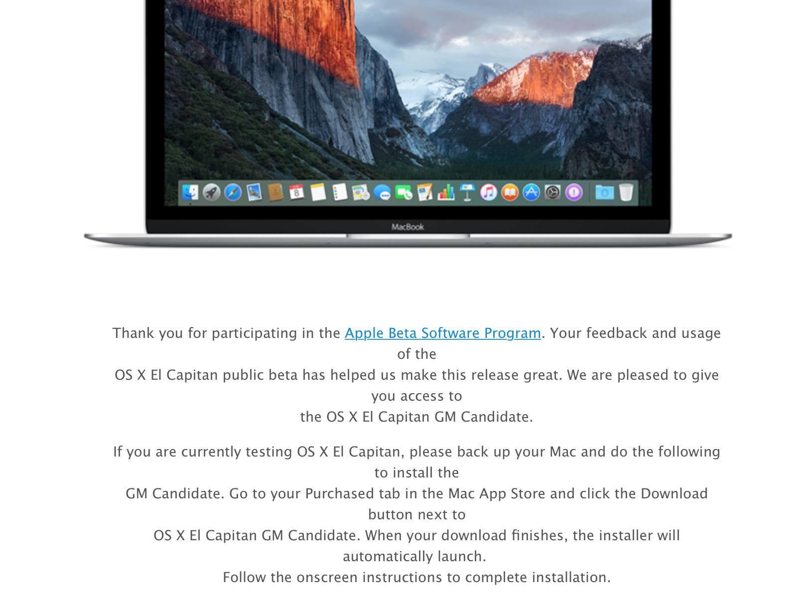 I just got an email that the El Capitan GM is now available for public Beta testers to download.View attachment 580135