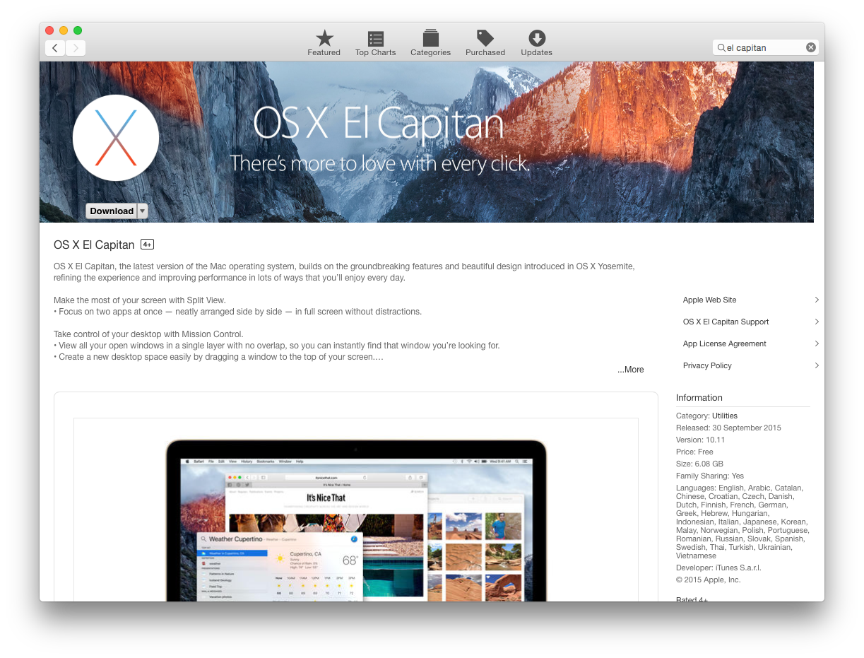 YAY!!! Finally, searching El Capitan worked after closing and reopening the App Store. Downloading now at a cool 8.2MB/s (around 60Mbps).