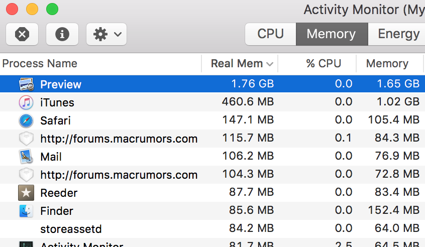 It amazes me you are angry about memory usage from Preview yet the fact that in one of the screenshots there are two (no not one, but two...the horror!) processes for this forum each consuming 110+ MB of memory goes completely unnoticed! Not to mention kernel_task consuming almost abusing 850MB of memory. Nothing should ever use memory, memory has to have 0% usage because you buy stuff in order to not ever use it since using it would be a complete waste of money o_O