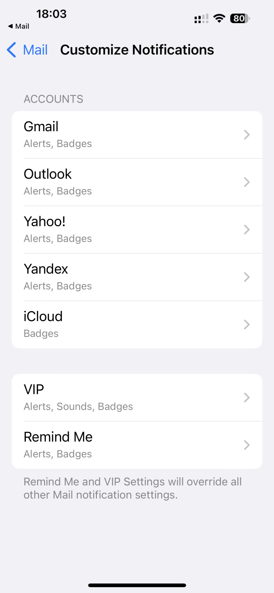 Using the stock iOS Mail app I no longer receive notifications from VIP contacts when I receive an email from them. My Mail notification settings are only set for badges. But in the past VIP contacts would trigger sound and screen Lock Screen when receiving emails from them. But no longer. Thanks for the help.