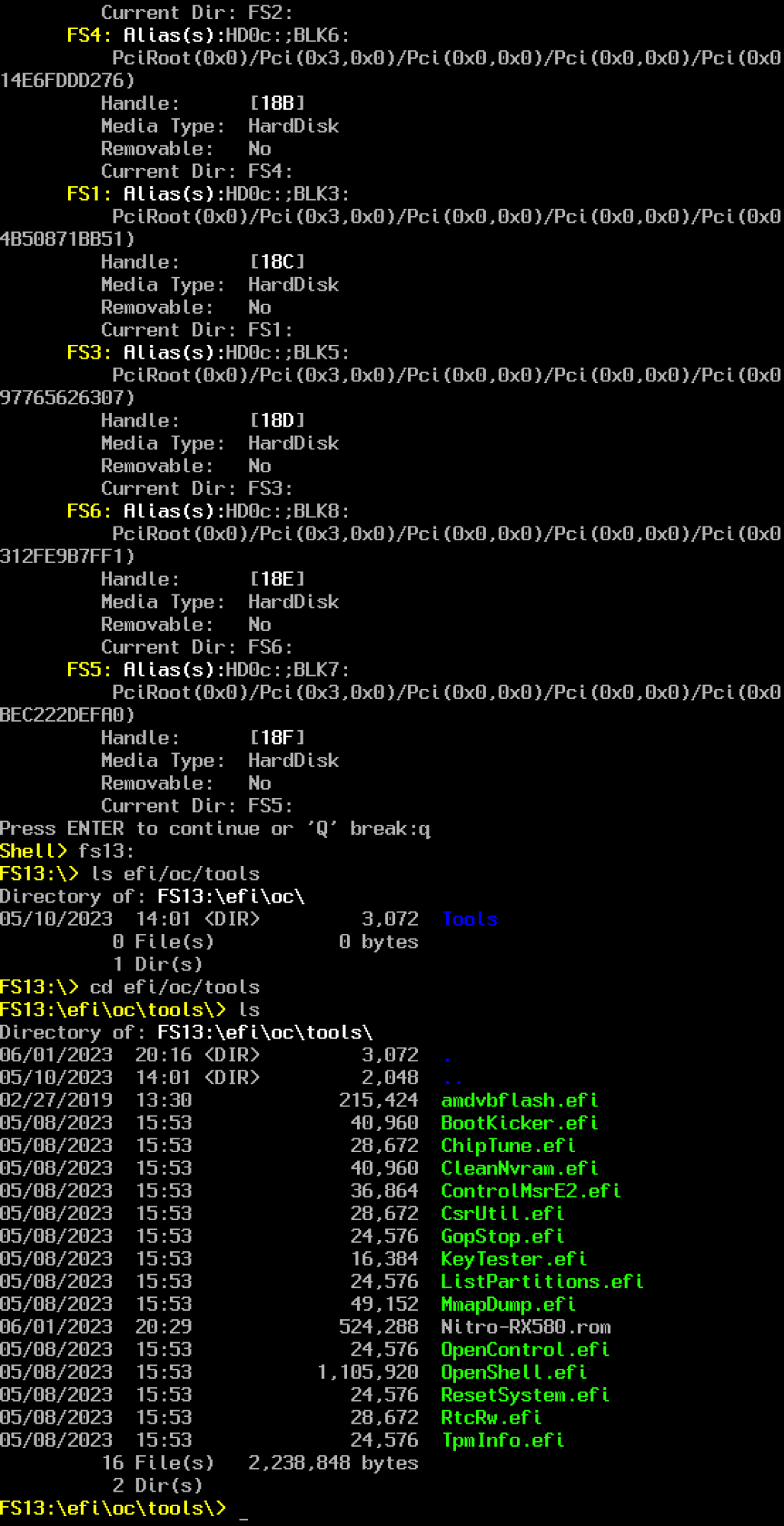 That's great, thank you so much! I wasn't aware of this option, I'll probably go this route since you've reported success doing this.With OpenCore, you can run the Open UEFI shell for the boot picker which will give you a command shell.