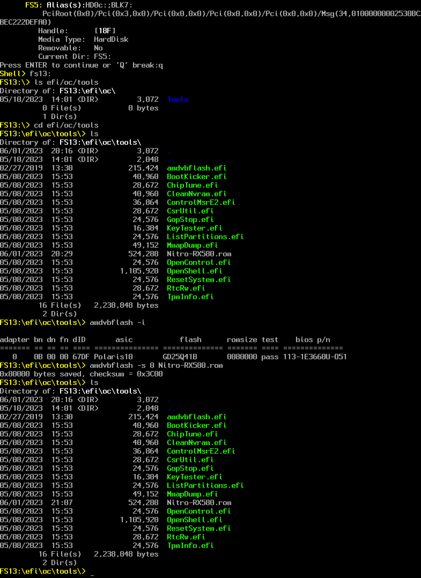ls to list the contents of the Tools folder.amdvbflash -i command to find out the AMD adapter number you have (should only be one listed if you only have card). E.g: