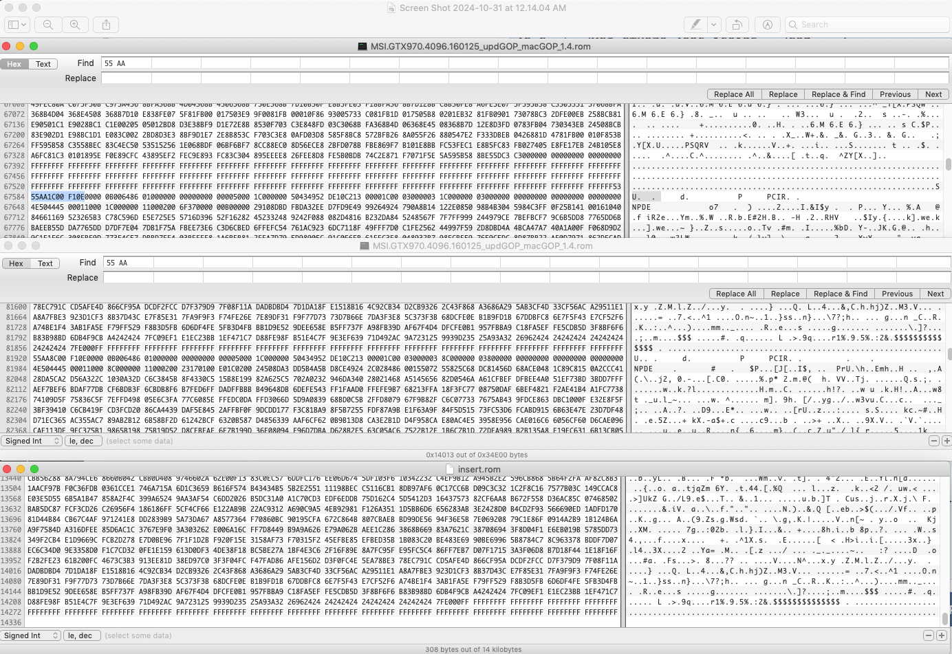 The enableGOP-patched vBios shows one at offset 67584 (byte) and the other at 81920.