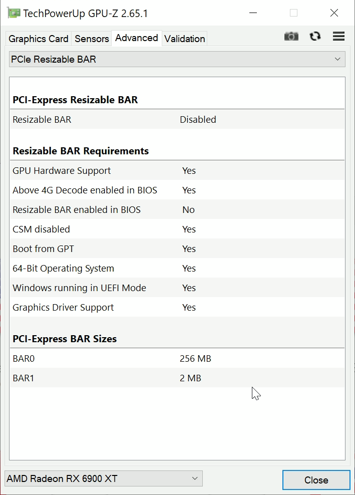 sudo lspci -s 03:00.0 -nnvv from my pciutils fork for macOS). It's in a hackintosh that doesn't have resizable BAR options in firmware.