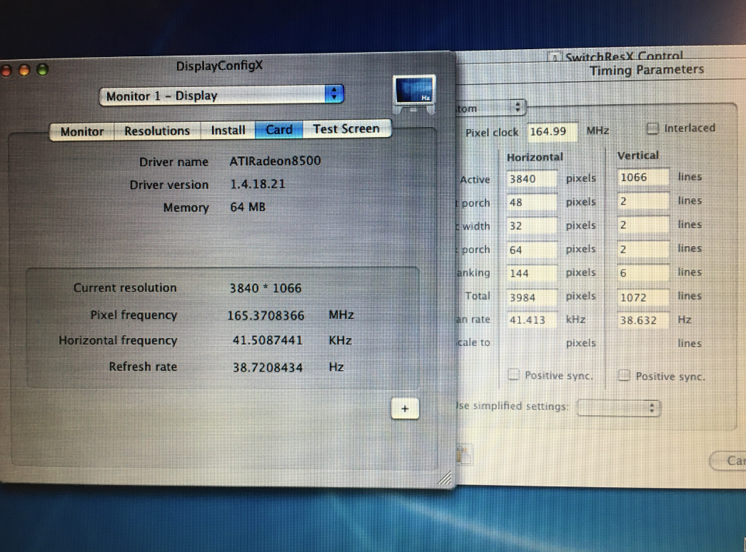 Now that the 3840 x 1066 mode has been removed for a reboot cycle, I'll re-add it at 165.00 MHz:
