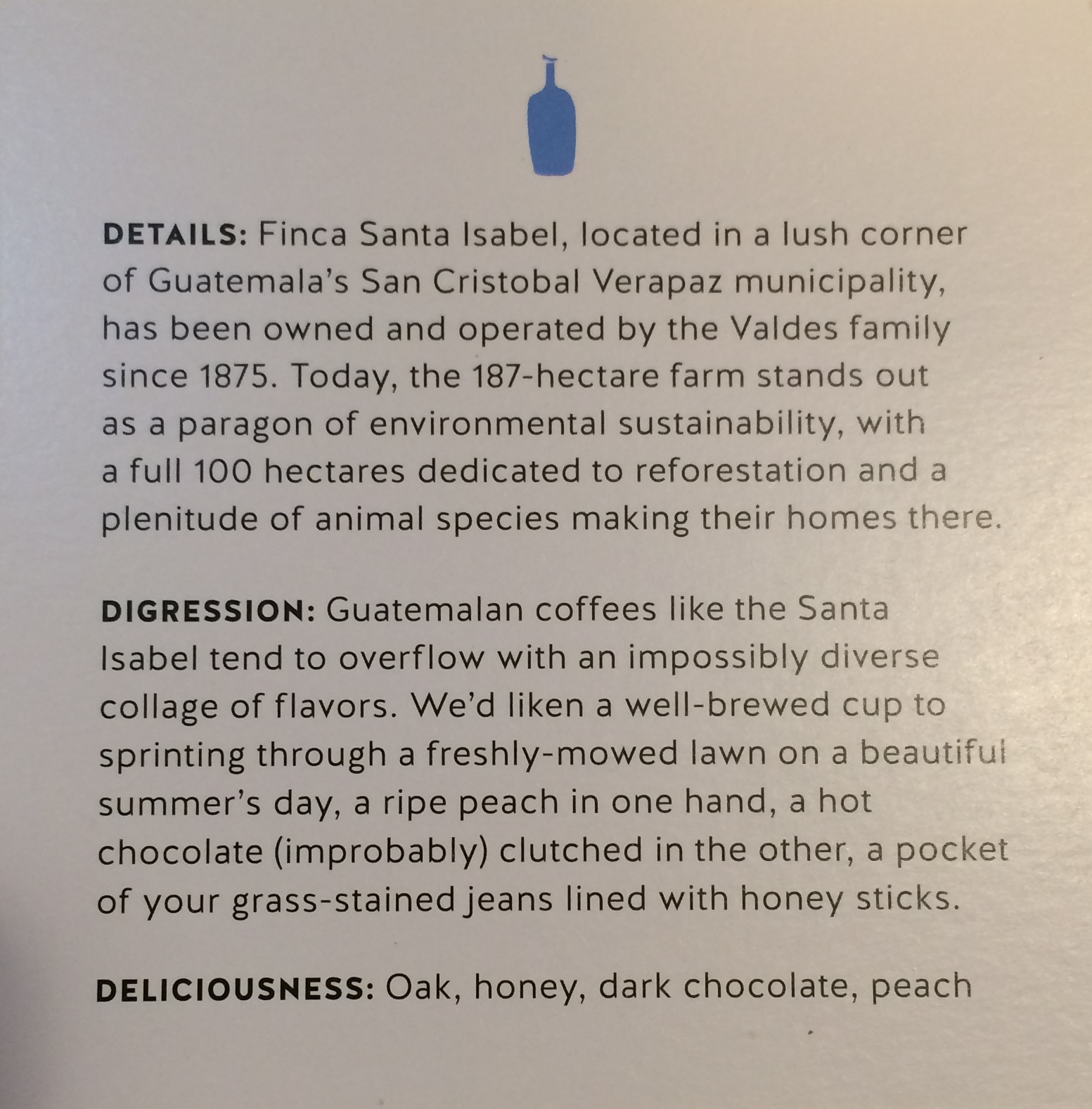 But no wine tasting note will ever include all of the above on one label, which is why I was surprised that the coffee you posted did…….