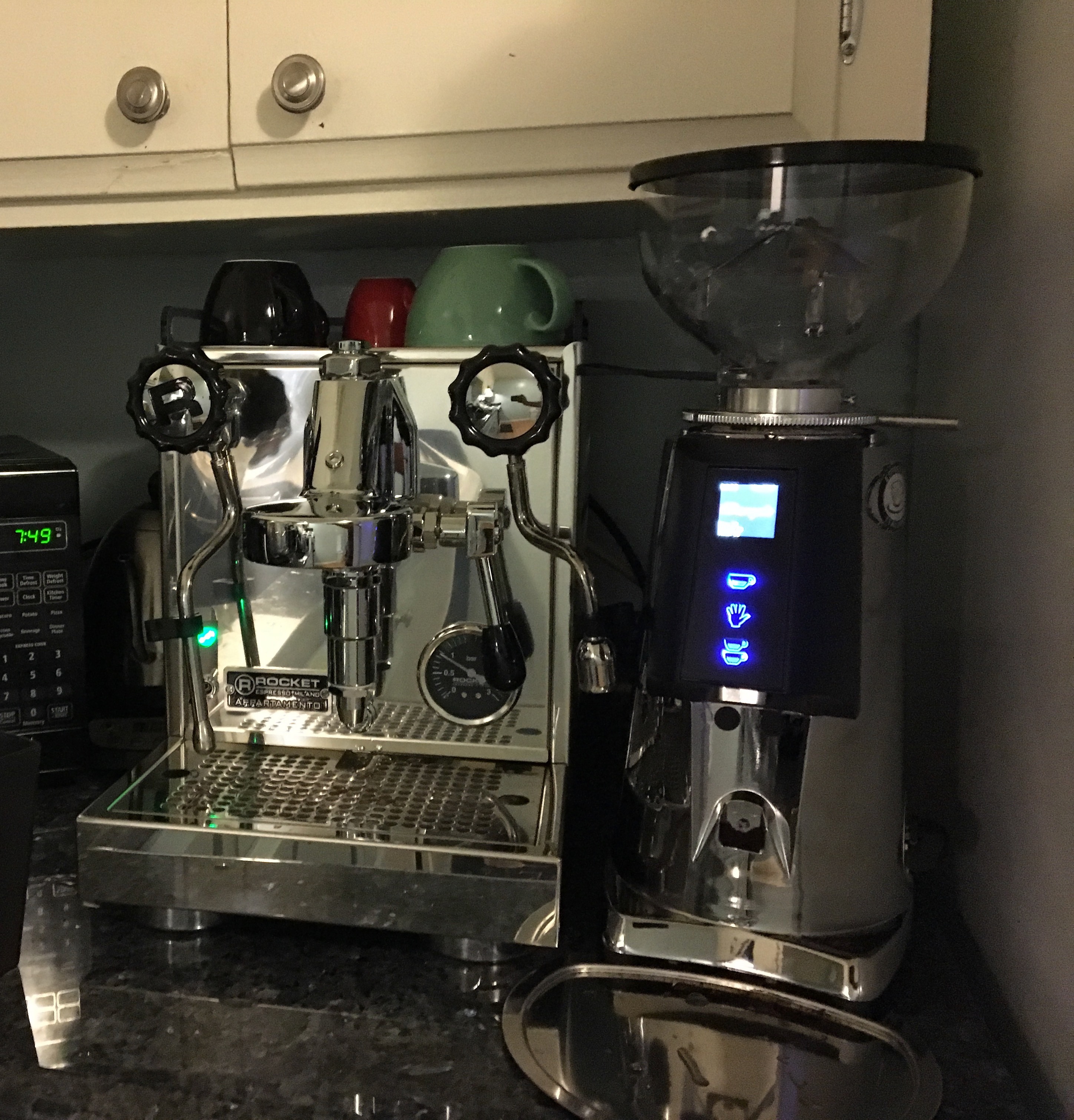 I'm going to keep experimenting with it. I already made a ton of mess in the beginning as you can sort of see in the picture where the grinder stand is. I even jammed the grinder, trying to adjust it finer when there were coffee beans in. There was some weird issue as a result. I would dose out 18 grams, and then it would just spit out about 6 grams worth of coffee after I removed the portafilter. Initially I thought it was just discarding some old coffee grinds, but it was due to the jam. Fixed it, and the problem disappeared.