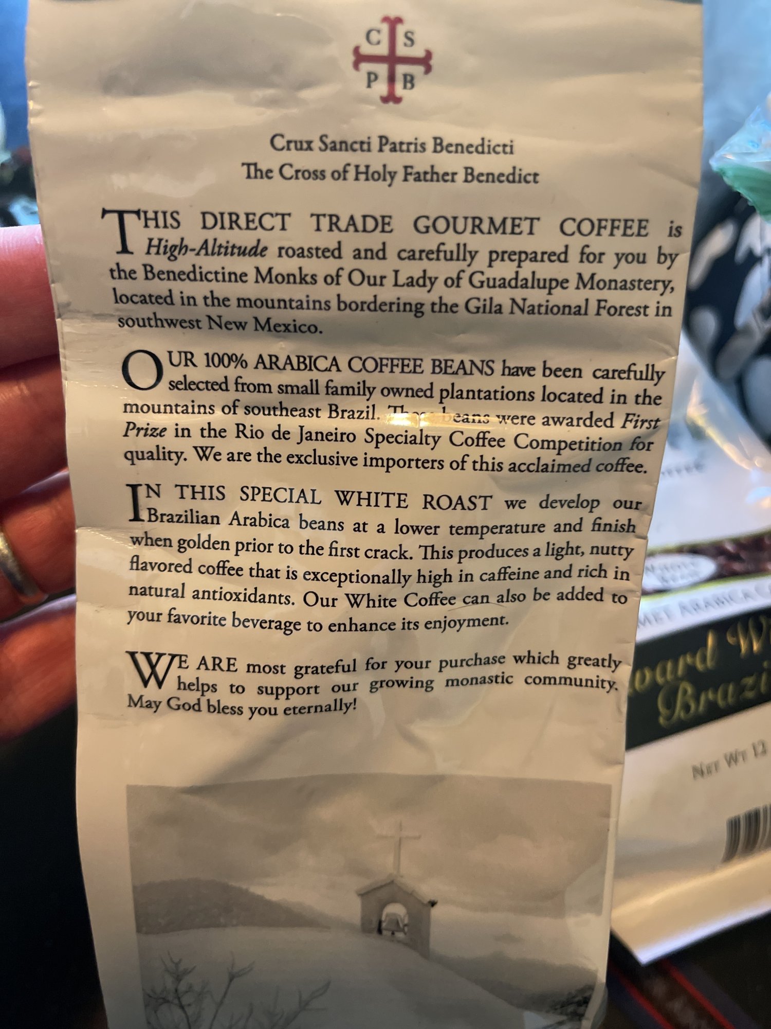 Some more info on the package. In line with my character and tradition I purchased this from a group of Benedictine monks as it seems that monks can output great quality products (Liqueurs, beer, coffee etc):